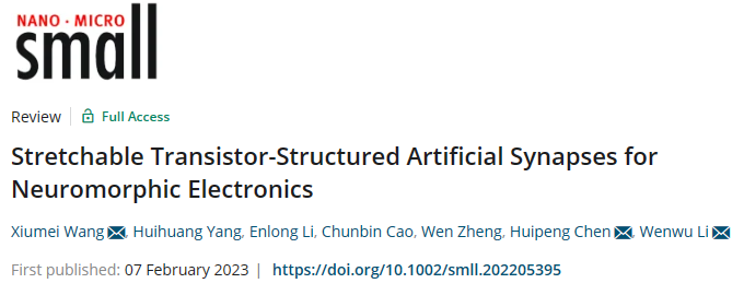 本网讯 近日,我校理学院光电材料与器件团队与合作者在材料科学国际顶级期刊《Small》(IF=15.153)上发表了题为“Stretchable Transistor-Structured Artificial Synapses for Neuromorphic Electronics”的综述文章(Small, 2023, 2205395)。