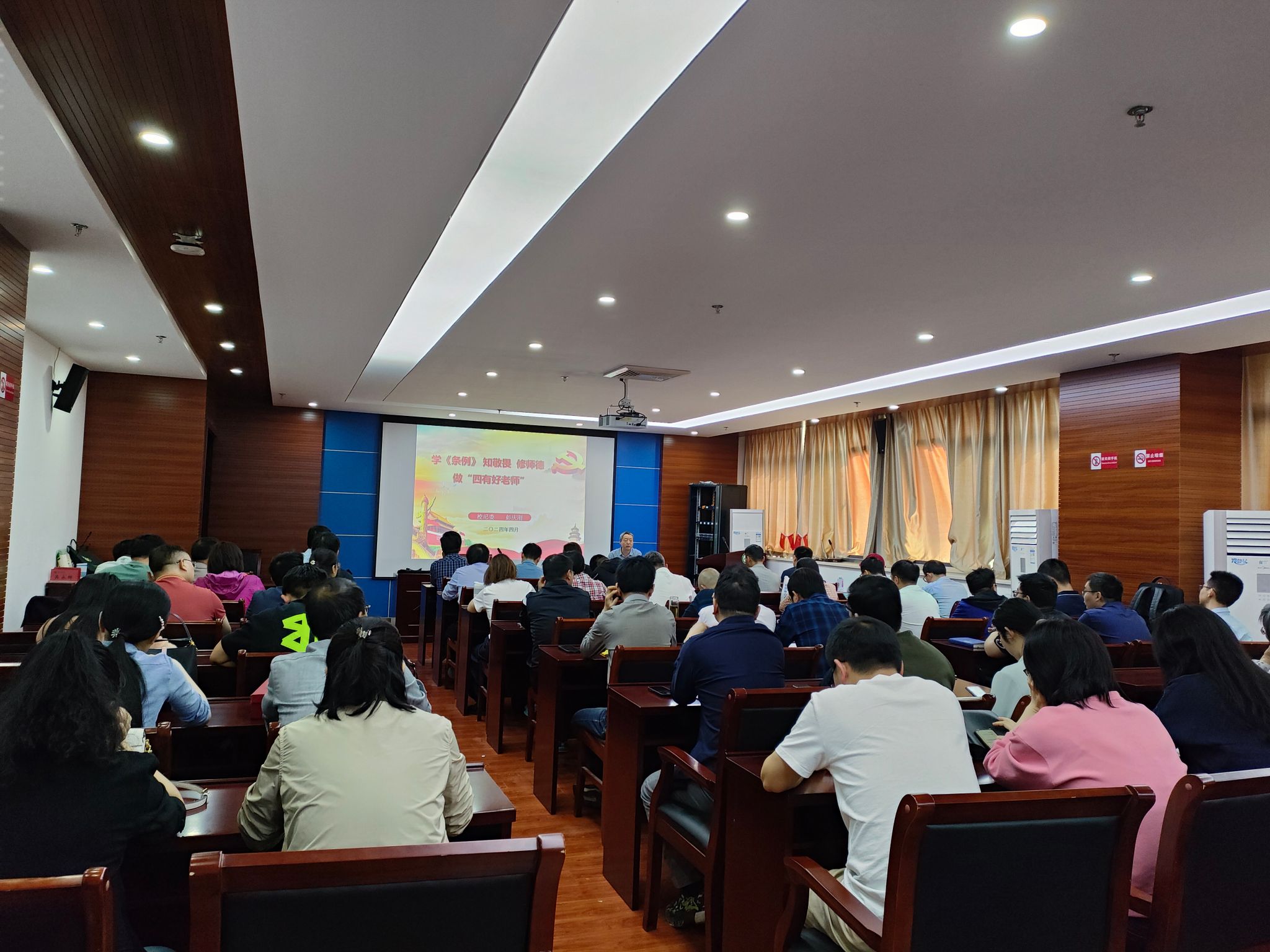 彭庆刚以“学《条例》知敬畏 修师德做‘四有好老师’”为题,围绕“认清形势,常戒非分之想”“严守纪律、常怀敬畏之心”“找准坐标,常修为师之德”等三方面,从学校近年来发生的违纪案例分析入手,详实解读了《中国共产党纪律处分条例》六大纪律,为全体党员讲授了一堂深刻、生动的廉政教育专题党课。课后,全体党员观看了警示教育纪录片《永远吹冲锋号》。