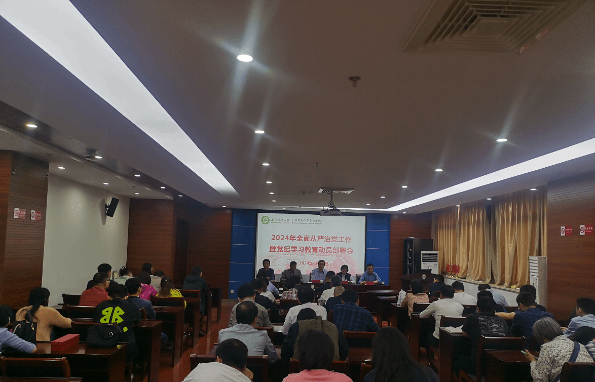 本网讯 4月24日下午,学院在中西部楼637会议室召开2024年全面从严治党工作暨党纪学习教育动员部署会,院党委书记吴辰华主持会议,校纪委副书记、纪委办公室主任彭庆刚应邀出席,全体党员教师参加会议。