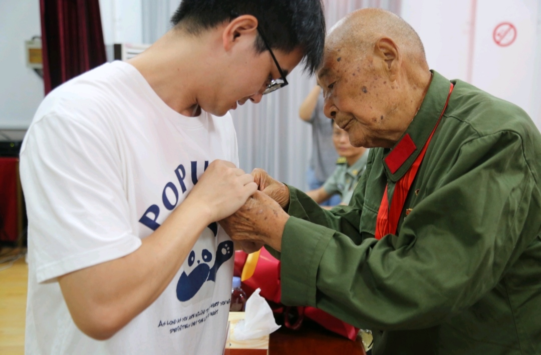一枚徽章,是一份责任,更是一份担当。活动中,曾参加过淮海战役、抗美援朝等战争,有着94岁高龄的老首长贺国强为新发展党员代表佩戴党员徽章。2021级数据科学与大数据技术专业的詹杰作为新发展党员代表进行发言。他表达了对党组织培养教育的感激,对革命先辈崇高的敬意,以及加入党组织的光荣感和自豪感,他坚定地诠释作为一名新党员的赤诚忠心。他表示,要加强政治理论学习,坚守初心使命;要树立终身学习的观念,勇担时代大任;要严守党规党纪,保持政治本色,要以优秀共产党员的标准严格要求自己,将自己的智慧和热血融入到社会主义建设中去,融入到党和人民的事业中去,沿着革命前辈的足迹继续前行,在矢志奋斗中谱写新时代的青春之歌,担起新时代青年的使命与担当。
