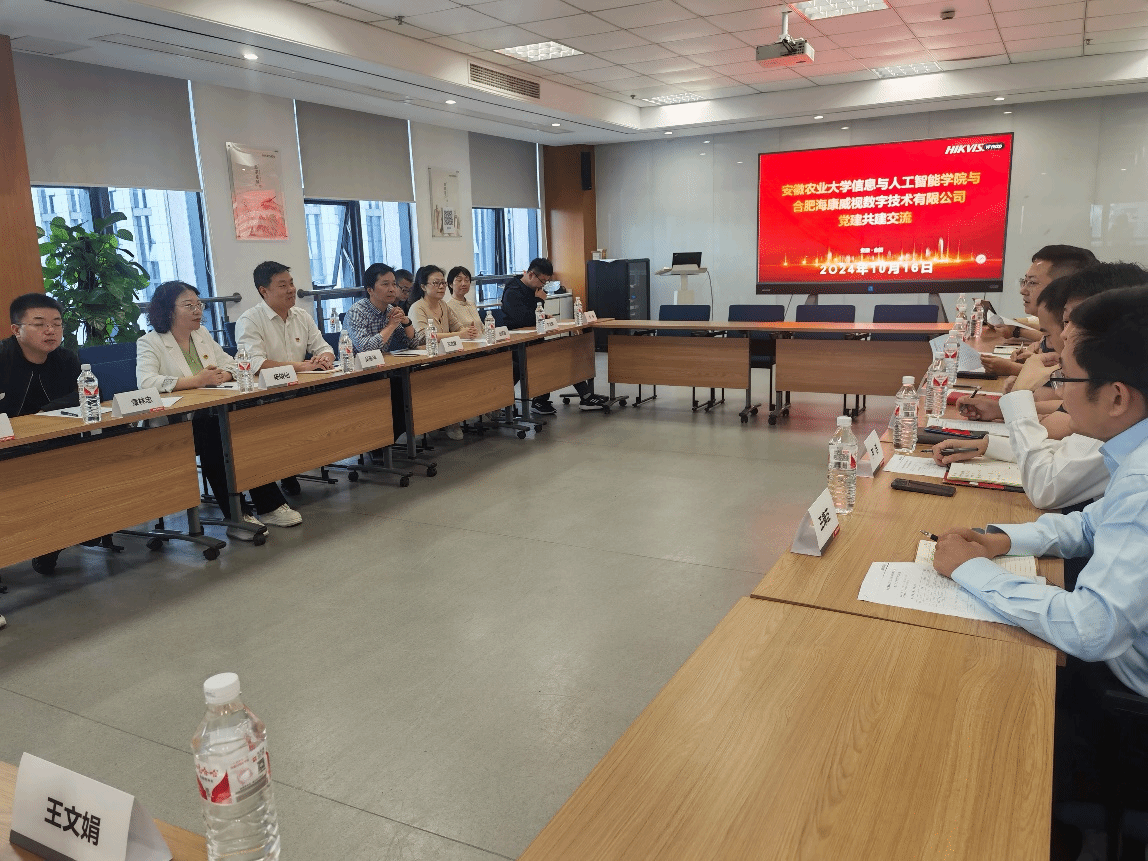 为深入学习贯彻党的二十届三中全会精神,凝聚党建合力,推动资源共享,实现产学研融合发展,10月16日,学院党委书记吴辰华、副院长张成堂等一行前往海康威视安徽业务中心进行调研。海康威视安徽业务中心党支部书记、总经理程浩接待吴辰华一行,并主持随后的座谈会。