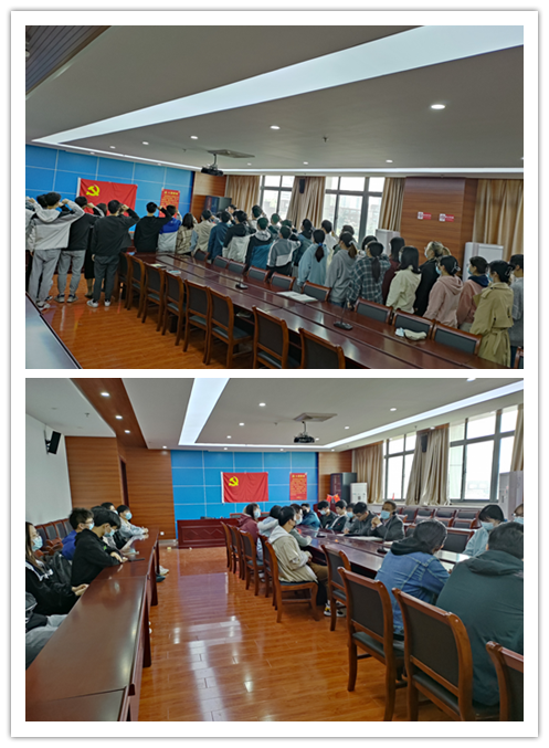 向党旗宣誓 表接续奋斗之心。4月2日,在学院639会议室学院党委组织新发展党员座谈会。会上,在支部书记张续带领下,新党员们面向党旗进行庄严的宣誓,“我志愿加入中国共产党,拥护党的纲领,遵守党的章程……”这是全体党员铿锵有力的誓言,每位党员都用发自内心的声音表达了对党忠诚的决心。随后,党员们畅谈自己入党后的规划和人生理想。学院党委副书记副院长孙伟进行了讲话,他希望同学们要加强理论学习,提升思想境界;以身作则,做好带头作用;严格遵守学校疫情防控管理规定,传递正能量。