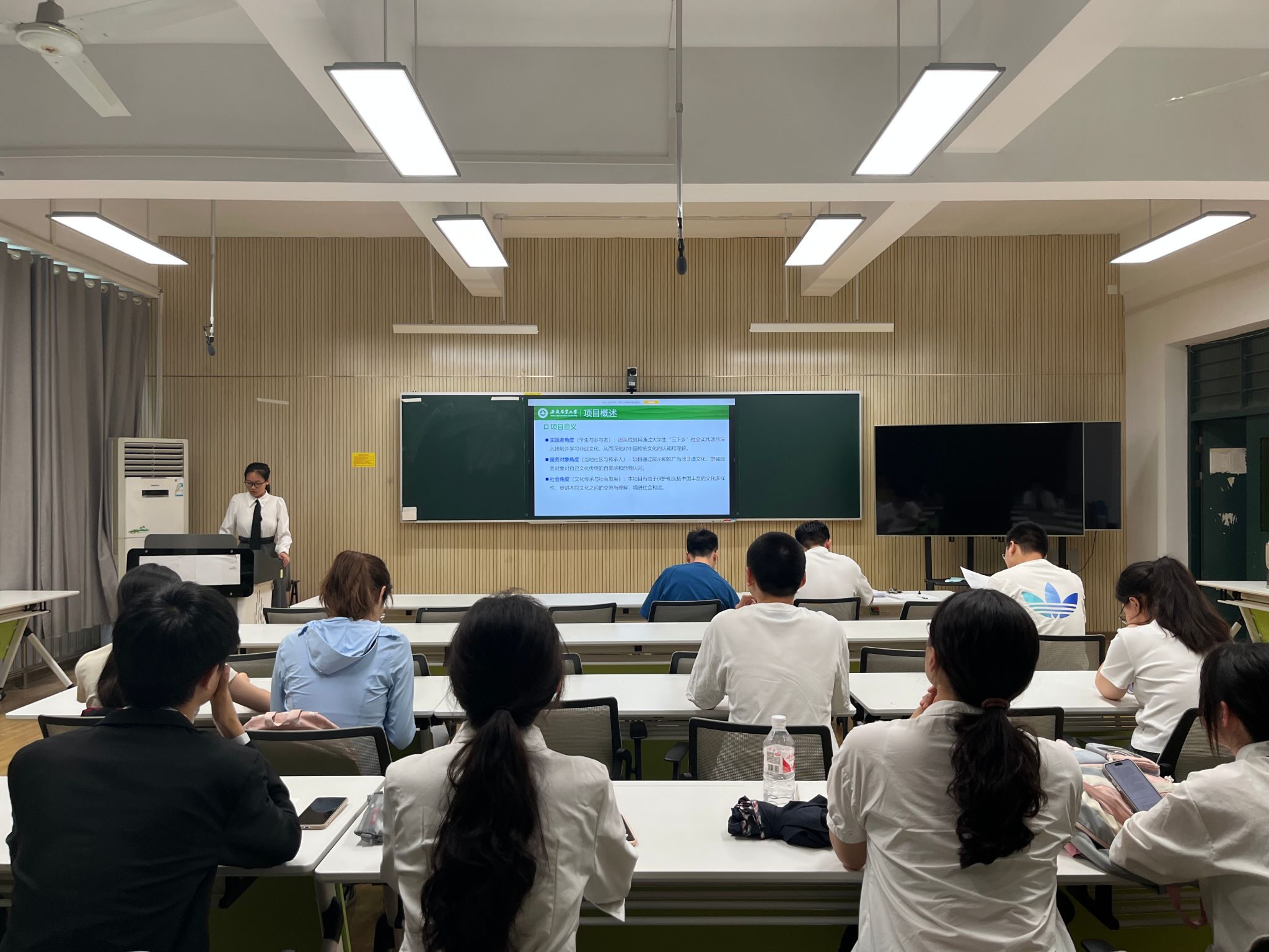 会上,各暑期社会实践队伍按照抽签顺序依次进行答辩,团队负责人围绕所属团队成员的基本概况、实践内容、项目亮点、活动安排、经费预算等方面进行现场汇报。