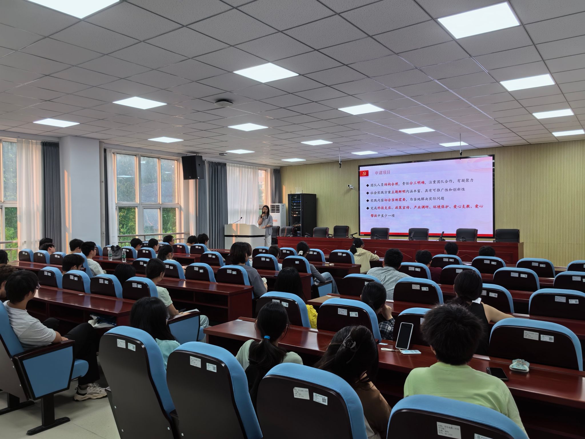本网讯 为提升学生暑期“三下乡·返家乡”社会实践活动策划与申报能力,选拔培育优质实践团队,5月28日,我院在信智楼202举办2025年暑期“三下乡·返家乡”社会实践活动培训答疑会。本次培训答疑会旨在为有意向参加社会实践的学子提供人员结构、实践项目设计、申报书撰写等方面的系统指导。我院24级团支部书记、拟申报项目学生参加培训答疑会。