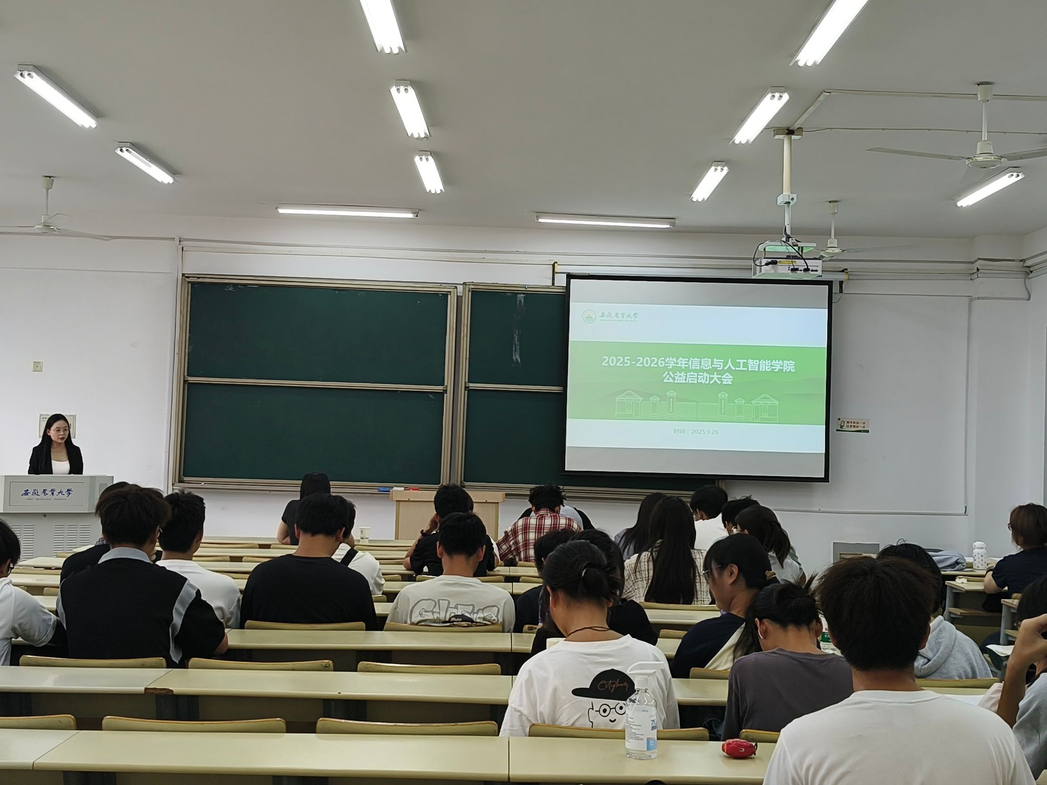 本网讯 9月26日,我院在208教室举行2025-2026学年公益活动启动大会。学院奖助工作负责老师、团学老师,100余名师生代表参加了会议。