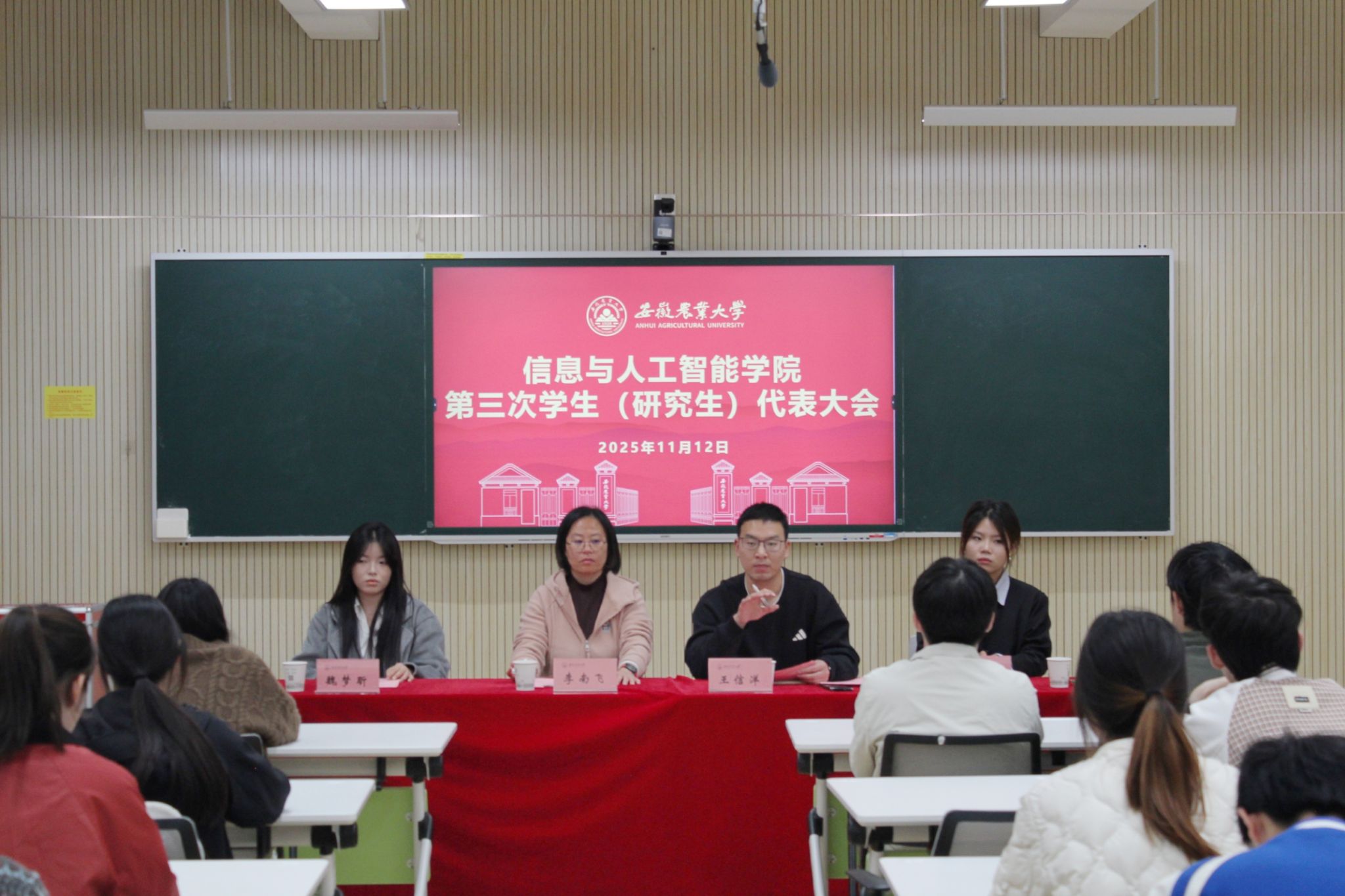 全院学生代表听取和审议2024-2025学年院学生和研究生分会工作报告并选举产生新一届院学生会、研究生会主席团成员以及第二次校学生代表大会代表和第次研究生代表大会代表。经过选举,张天奇王书延陶赛男当选为院第届学生会主席团成员,王懿凡聂瑶瑶、张声祺为第三届研究生会主席团成员。此外,会议根据《中华全国学联学生联合会章程》《学联学生会组织改革方案》和《普通高等学校学生(研究生)代表大会工作规定》等文件选举出张天奇30位同学参加安徽农业大学第二十次学生代表大会、王懿凡6位同学参加安徽农业大学第六次研究生代表大会。