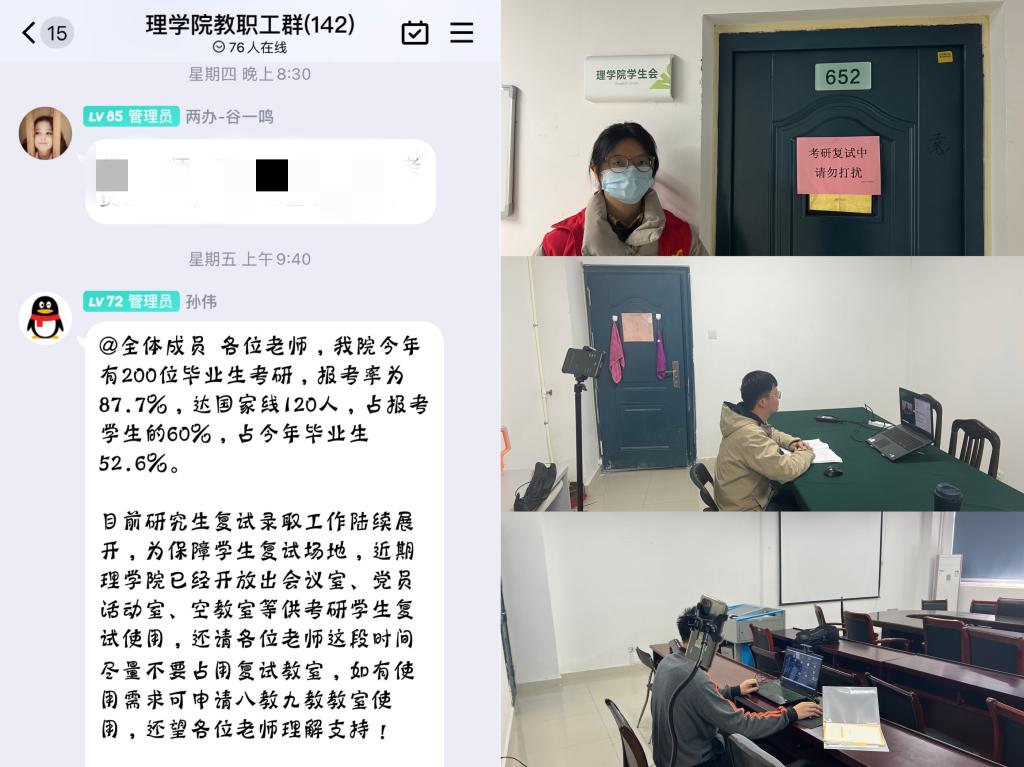 本网讯 近日,研究生复试录取工作陆续展开,受疫情影响今年普遍采取线上复试的形式,为积极应对线上复试,为关爱考研学生,理学院积极谋划,推出考研帮扶举措,助力学生复试成功。