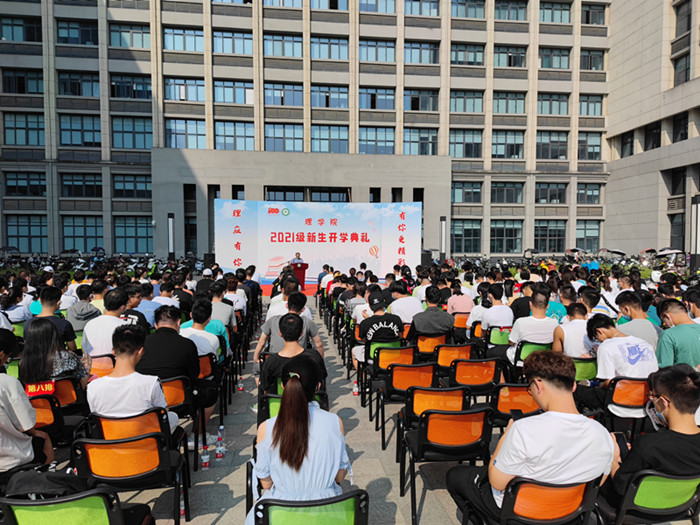 本网讯 9月11日上午,理学院在中西部大楼广场举行2021级新生开学典礼,院党委书记王冬平、院长毕守东、副院长张成堂、俞杰,各系部主任、教师代表及新生辅导员参加了典礼。典礼由院党委副书记、副院长孙伟主持。