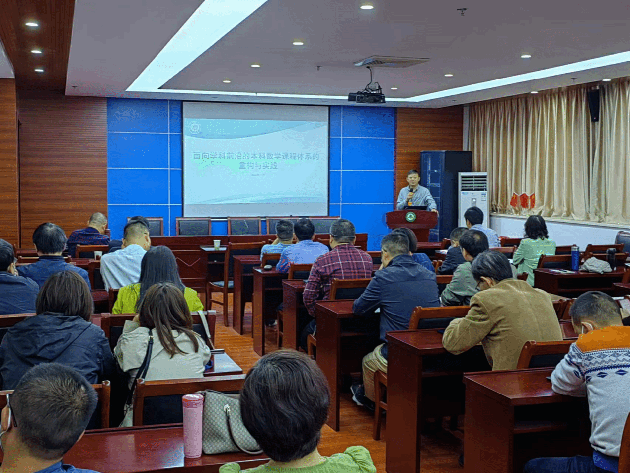 讲座中,陈猛教授与林金官教授用诙谐幽默的语言和真实案例,分别围绕数学本科课程体系面临的问题与挑战,面向学科前沿的数学本科课程体系重构与实践,数学课程内容革新、体系改革、模式创新,统计学一级学科博士点创建学科目标、学科方向特色、学科队伍、人才培养、培养环境与条件等方面进行了深入浅出的阐述和分析,并分享了一流数学课程与统计学科专业的建设经验。