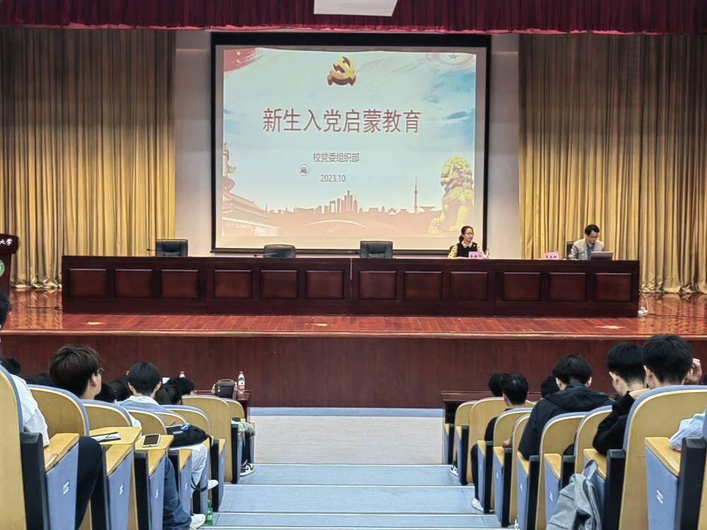 入党启蒙教育“第一课”把握新生入学的关键时刻,做好入党启蒙教育,引领广大青年积极向党组织靠拢。10月24日晚,校党委组织部副部长吴永红老师应邀在图书馆第一报告厅为学院2023级新生讲授入党启蒙教育党课。吴老师围绕“中国共产党是个什么样的政党”,从党的性质、宗旨、指导思想、党的基本路线和基本纲领出发,为学生上了一堂党史教育课;围绕“我们为什么要加入中国共产党”,以习近平总书记的入党故事和“优秀共产党员”钱学森的故事为例,为学生上了一堂人生导航课;引导学生思考“我们怎样才能入党”,从端正入党动机出发,详细阐述了青年学生加入中国共产党的程序步骤,为学生上了一堂精彩的路径规划课。本次课程有力地引导全院新生从思想上和行动上积极向党组织靠拢,将成为一名合格的共产党员作为坚定的青春选择。