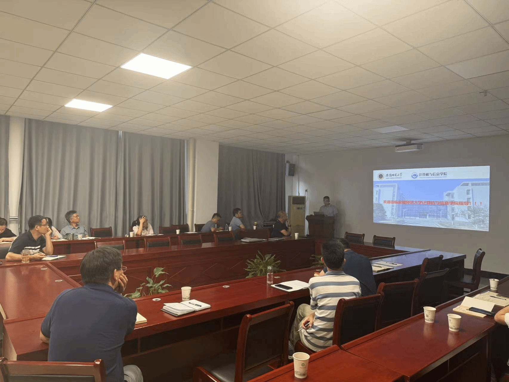 本网讯 7月9日下午,合肥工业大学教授、博士生导师胡学钢和安徽师范大学接标副院长受邀在信息与人工智能学院楼203会议室开展了工程教育专业认证的专题报告。报告交流会由计算机系主任时国龙主持,我院各教研室主任、各专业负责人及骨干教师参加了此次会议。