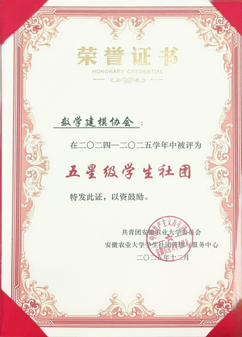 数学建模协会由我院教师指导成立于2016年,作为数学建模爱好者的交流平台,协会始终致力于为同学们提供系统学习建模知识、分享实战经验、拓展创新思维的成长空间。近日,该协会凭借其扎实的学术活动和突出的组织建设成果,成功获评为我校2024-2025学年“五星级学生社团”。(文/图:章林忠 初审:陆强 复审:王燕 终审:张成堂)