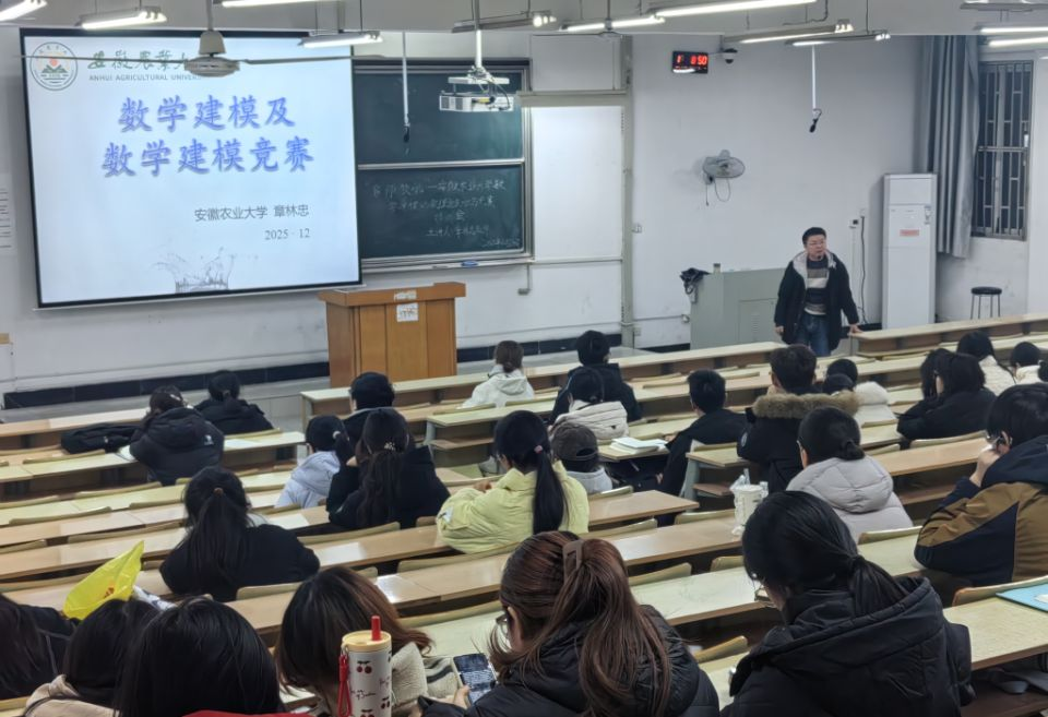 本网讯:为夯实学生数学建模理论知识储备,提升科技创新与实践应用能力,2025年12月24日,我校数学建模协会特邀信息与人工智能学院副教授、社团指导教师章林忠,在博学楼327教室成功举办“名师领航”专题提升讲座,近200名数学建模爱好者齐聚现场,共同聆听学习。