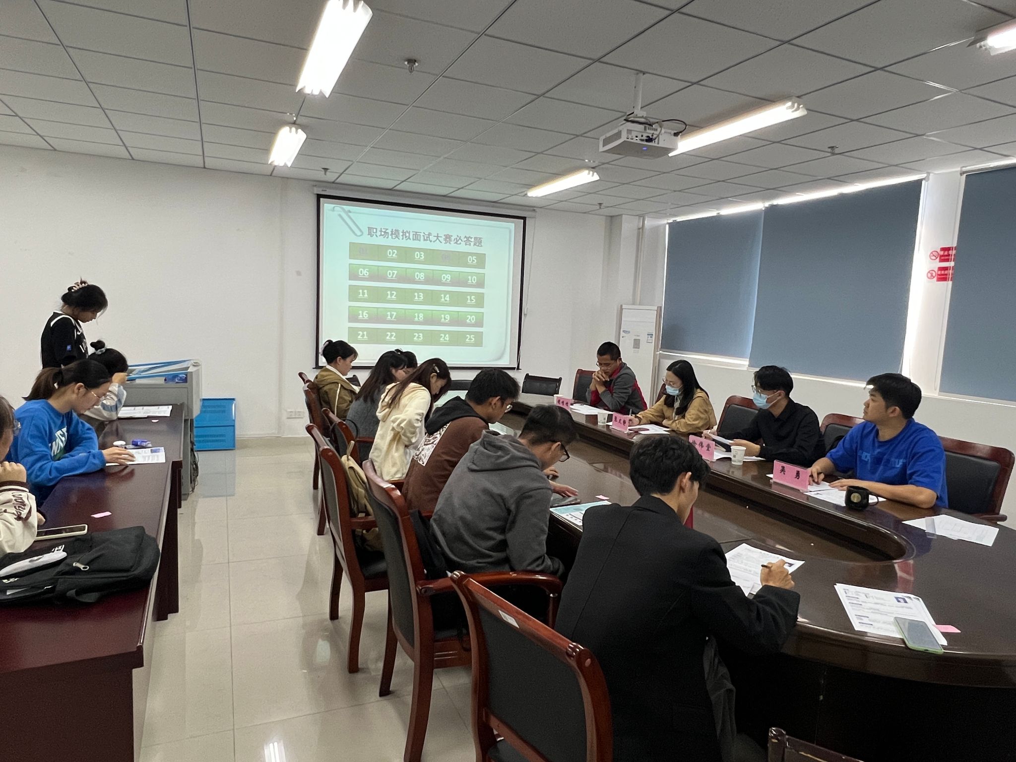 本网讯 为了帮助学生更早地了解职场生涯,高质量规划大学生活,充分做好就业准备,10月13日,理学院第第六届“校友杯”职场模拟面试大赛在中西部综合楼641会议室举行。京东方人力资源部徐伟堂经理和兄弟学院相关工作负责人担任评委。