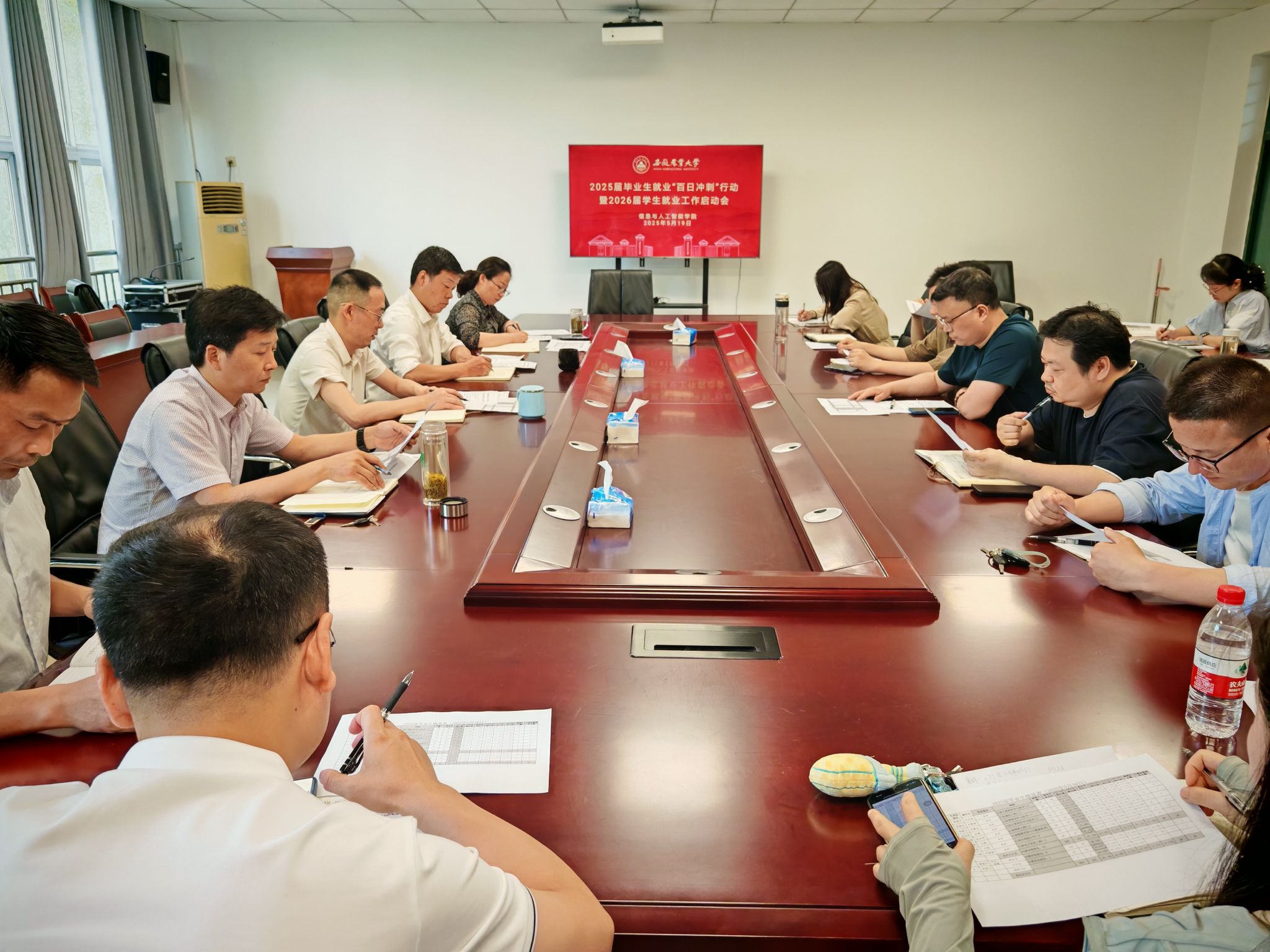 本网讯 5月19日,学院在203会议室召开2025届毕业生就业“百日冲刺”行动暨2026届学生就业工作启动会。学院党政班子成员,各系部主任,2025届、2026届学生班级辅导员参加了会议。会议由学院党委副书记、纪委书记李南飞主持。