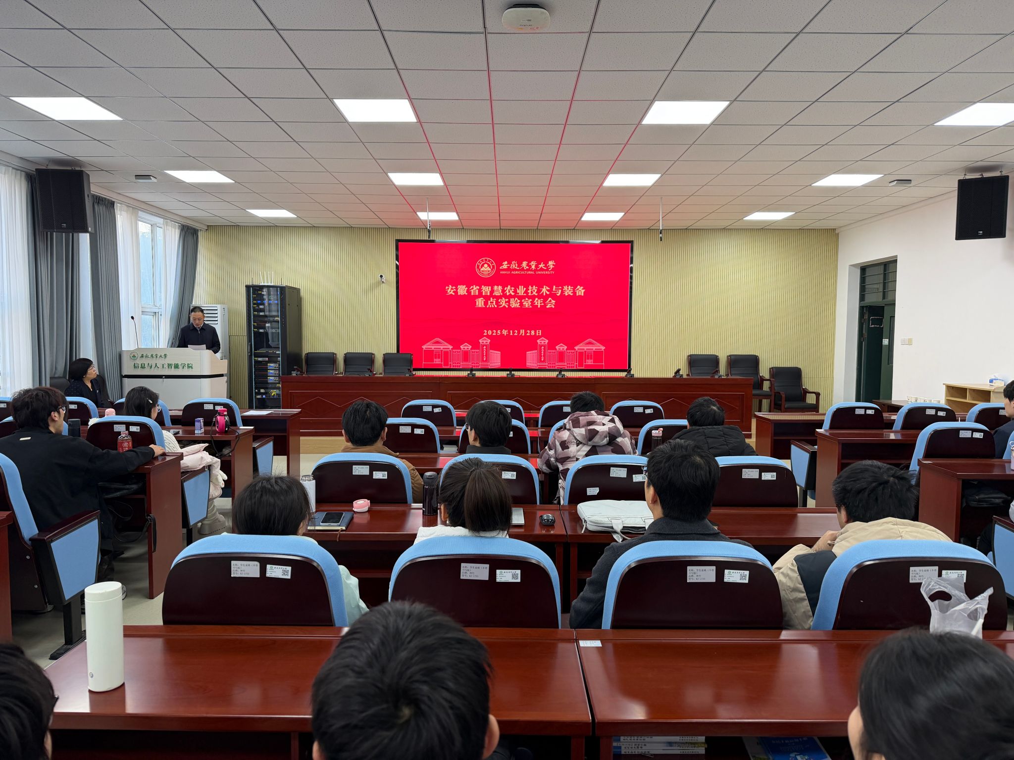 本网讯 12月28日,2025年智慧农业与装备研讨会暨重点实验室年会在信息与人工智能学院召开。会议由科技处、信息与人工智能学院、农学院、园艺学院、安徽省智慧农业技术与装备重点实验室、安徽省农情信息感知与智能计算工程研究中心、农业农村部农业传感器重点实验室、安徽省北斗精准农业信息工程研究中心共同主办。会议邀请浙江大学、中国农业大学、西北农林科技大学、华中农业大学、中国农科院、江苏大学等高校和科研院所知名专家学者作专题报告,围绕智慧农业关键技术、智能装备研发及成果转化等方向深入交流研讨。
