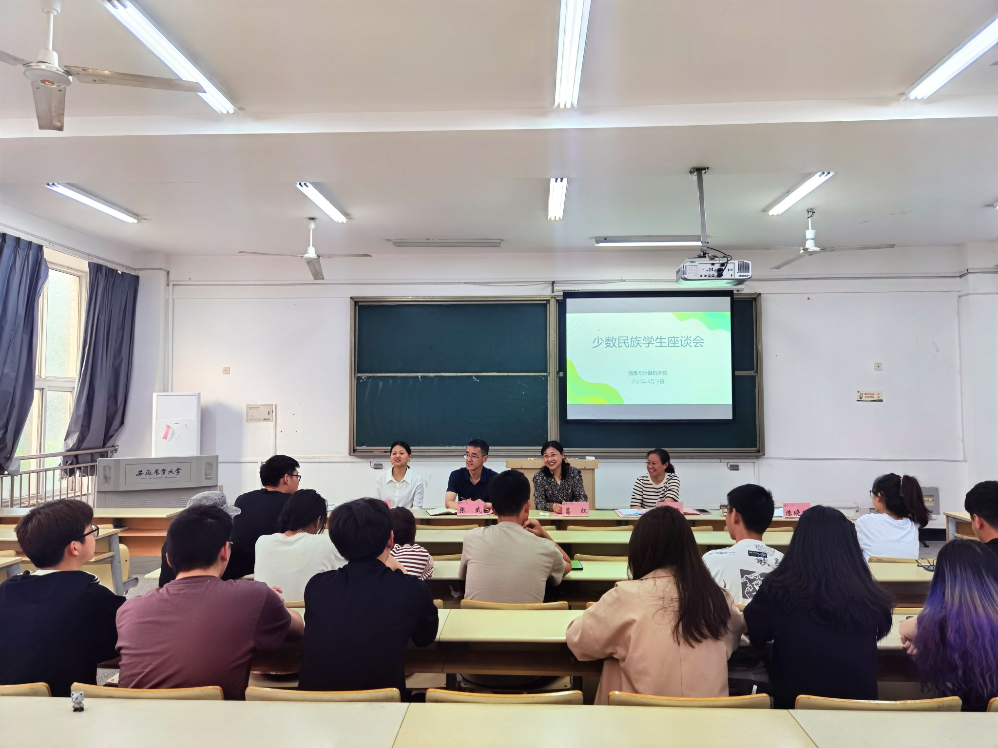 本网讯 为推进新时代学院民族工作高质量发展,进一步加强民族团结进步,4月19日下午,信息与计算机学院召开少数民族学生座谈会,学院党政领导、专职辅导员代表、少数民族学生代表参加了座谈,会议由学院党委副书记、纪委书记李南飞主持。