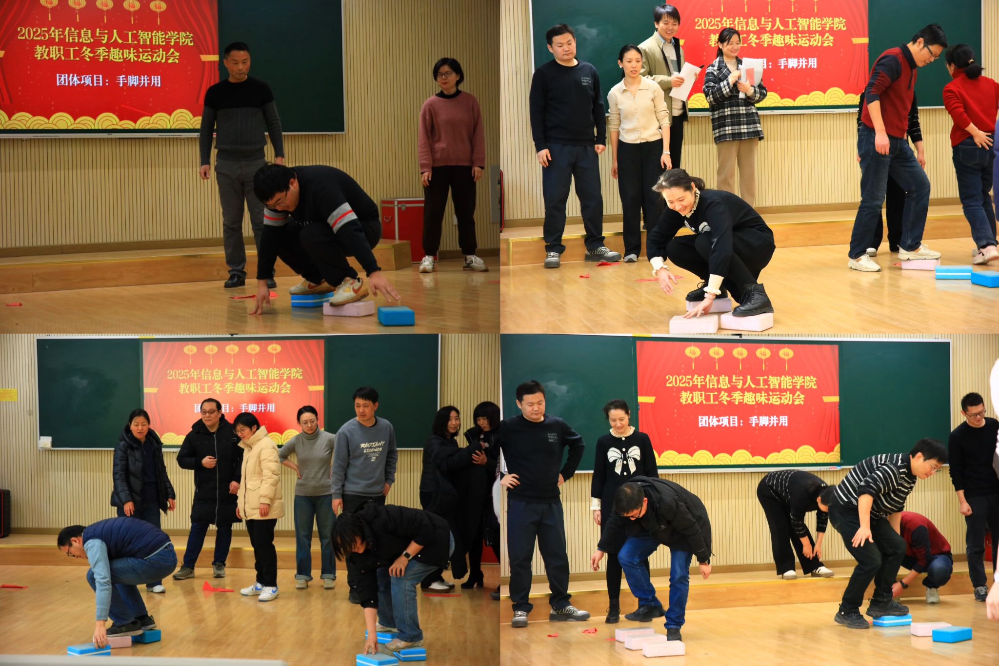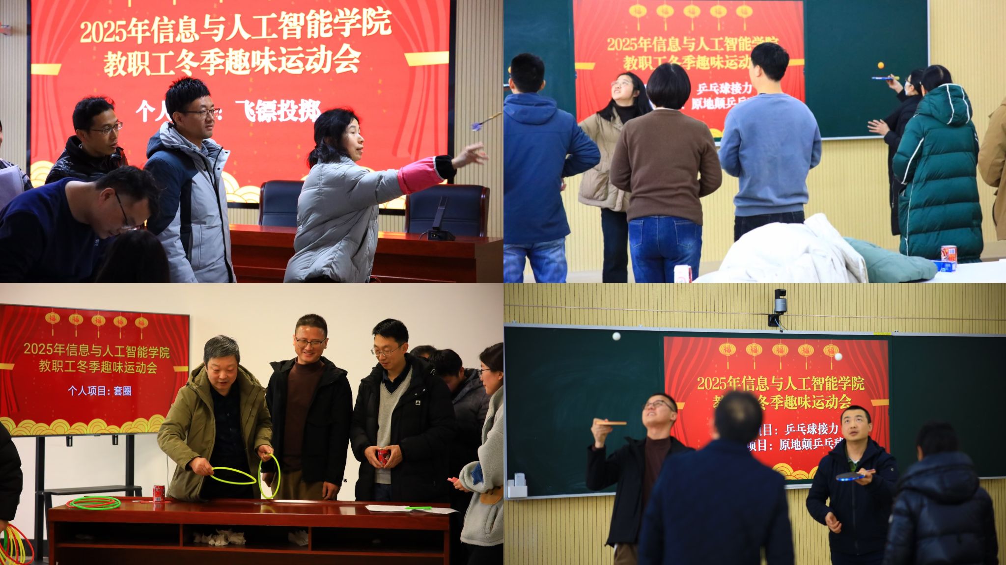 1月8日下午,信息与人工智能学院冬季趣味运动会在经技楼二楼举办。此次运动会以丰富教职工业余生活为目的,旨在帮助教师们疏解心理压力、增强团队凝聚力,活动吸引了全院11个系部,140余名教职工踊跃参与,在欢声笑语与激情竞赛中展现了学院教职工的活力与风采。
