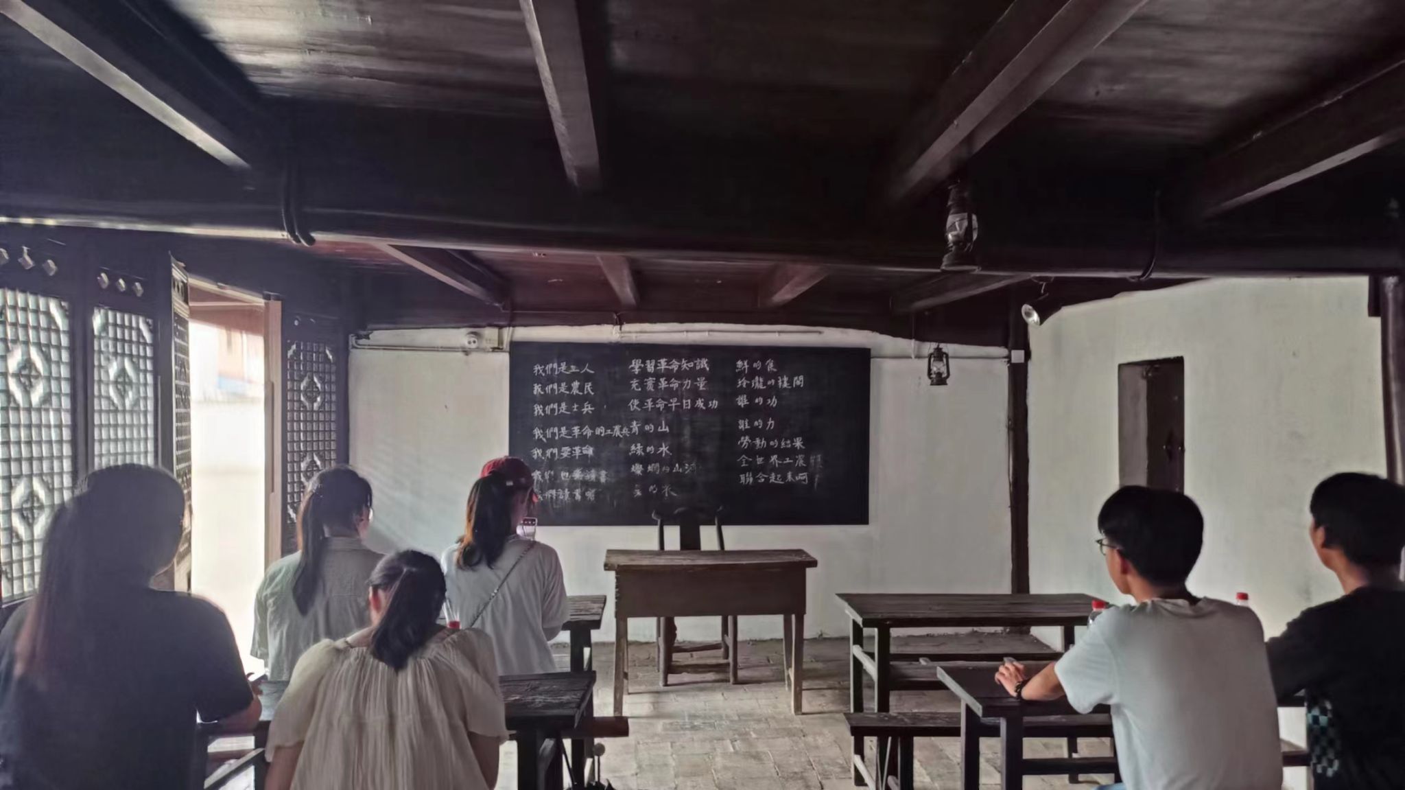 随后成员们参观了独山革命旧址群,了解到独山镇“一镇十六将,独秀大别山”的光荣历史,领略了小镇古色、红色相映成辉的独特魅力。在第四高等小学原址,成员们体验了当时简陋的教室和课桌,了解到当时最困难的是没有课本,大家抄一课学一课。让成员们知道,在今天这么好的条件下,更要珍惜学习的机会。