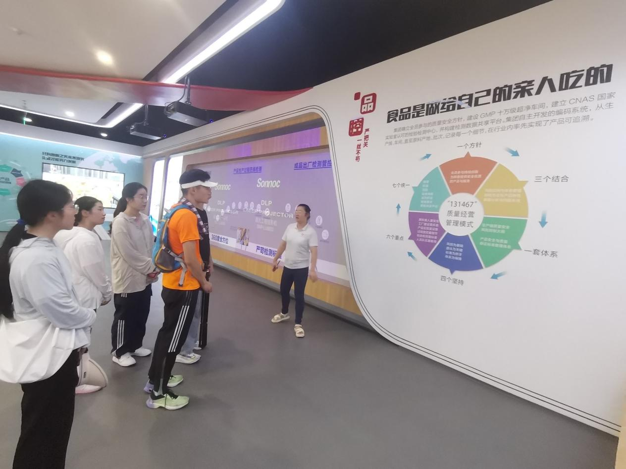 实践团队走进当地葡萄基地及蓝莓基地进行实地考察,并与基地工作人员深入交流,了解了当地种植业发展现状及前景,并基于自身专业建言献策。接着实践团队前往小岗村盼盼食品产业园,通过讲解,团队了解到盼盼之所以选择小岗村,是为了与当地红色文化进行互融互织共同进步。讲解员指出,盼盼的企业内核在于“一个方针,三个结合,一套体系,四个坚持,六个重点,七个统一”。随后通过对盼盼员工的采访,团队了解到了企业生态化转型、企业文化宣传等内容。