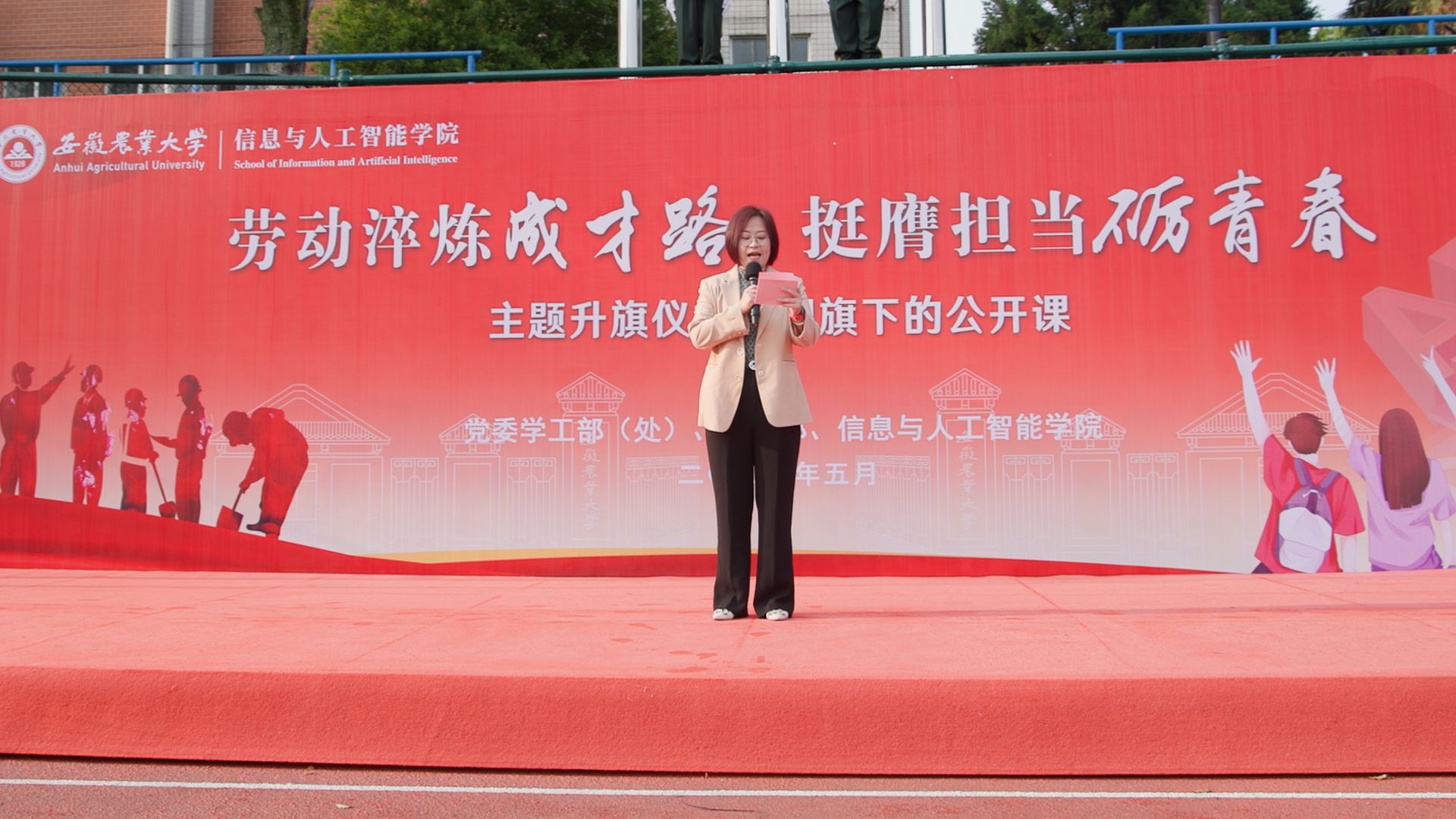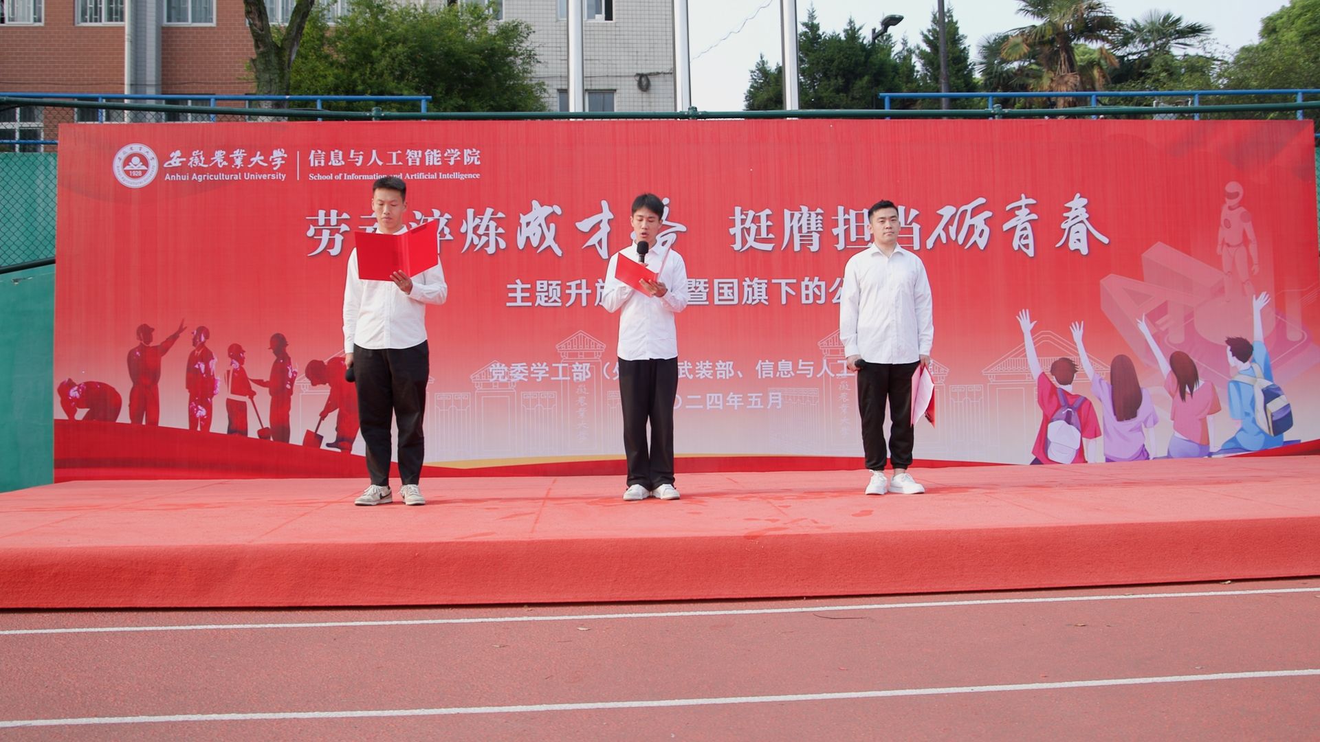 本网讯为学习贯彻习近平总书记五四青年节对全国广大青年寄语精神,加强新时代大学生的劳动观,5月6日清晨,信息与人工智能学院在校第一运动场举行“劳动淬炼成才路 挺膺担当砺青春”主题升旗仪式暨国旗下的公开课。党委学生工作部、党委武装部、学生处(大学生就业指导中心)部长、处长、主任任琪老师,武装部副部长、学生处副处长卢伟老师、学院党政领导、全体专兼职辅导员、新发展团员、党员发展对象、入党积极分子和2022级、2023级物流工程专业的全体同学参加了升旗仪式,升旗仪式由学院党委副书记、纪委书记李南飞主持。