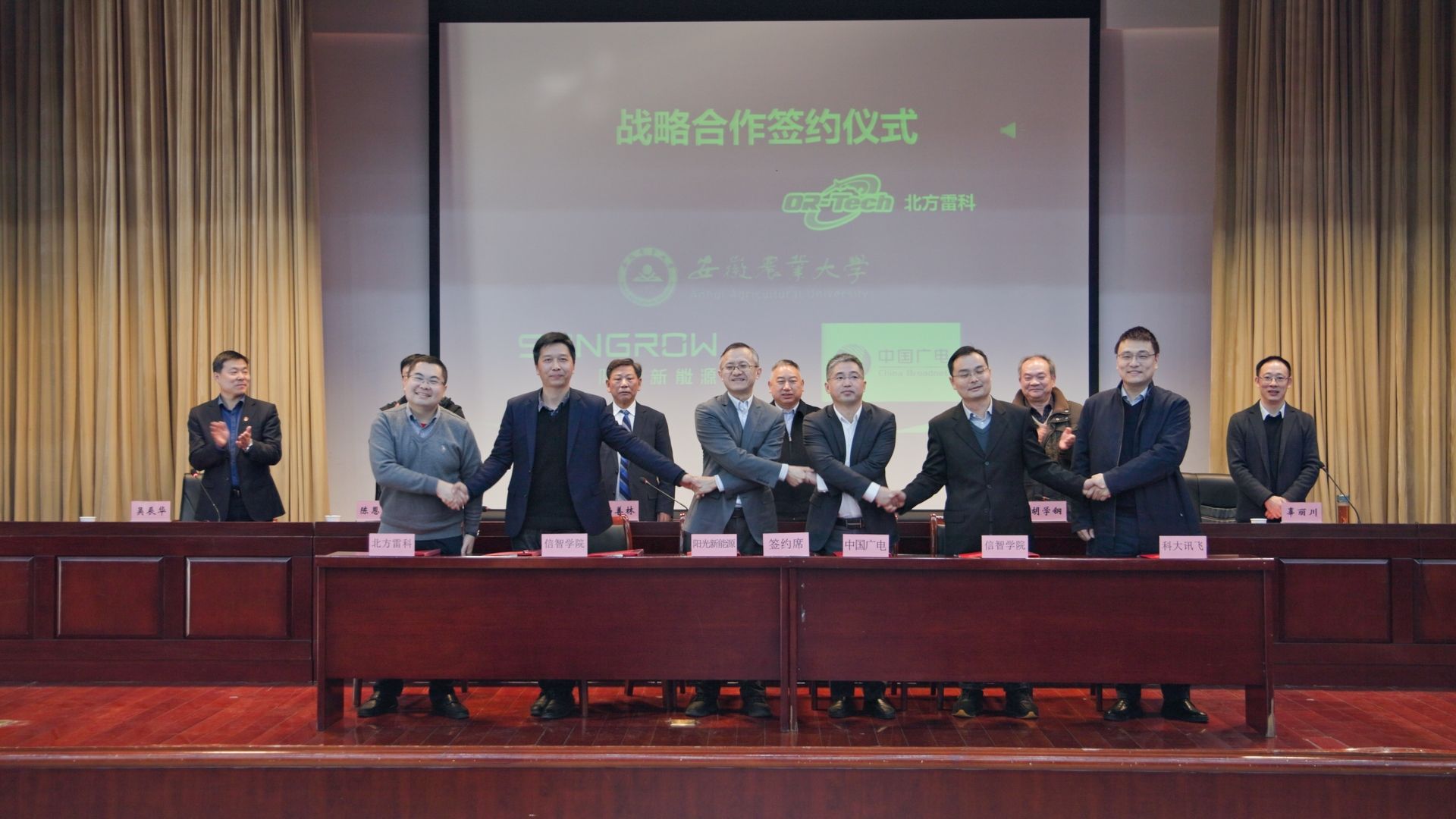 杨善林、胡学钢、徐辉分别代表行业领域、行业协会、兄弟高校等进行了致辞,期待未来能够开展多层次、多形式、多渠道、多领域的交流合作,共同推进新一代信息技术产业发展,携手实现共赢发展。学院院长辜丽川介绍了学院的整体情况,并与中国广电安徽网络股份有限公司、阳光新能源开发股份有限公司、北方雷科安徽科技有限公司、科大讯飞股份有限公司共同举行战略合作签约仪式,推进产学研用多元发展,促进教育链、人才链与地方产业链、创新链有机衔接,形成同频共振、携手联动的新发展格局。