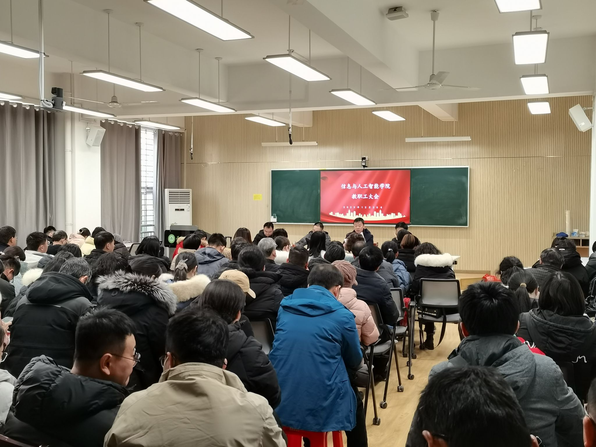 本网讯 12月20日,信息与人工智能学院在学院305会议室召开全体教职工大会。学院党政领导班子和全体教职员工参加了会议。会议由学院党委书记吴辰华主持。