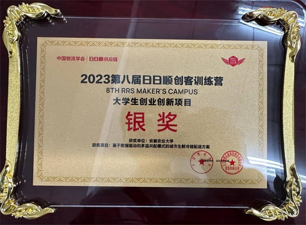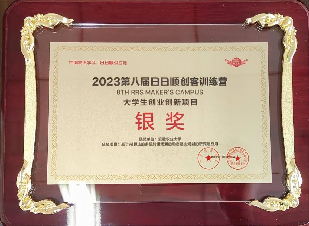 本网讯 中国物流学会与日日顺供应链联合主办的“追光而创,青春有为”2023第八届日日顺创客训练营全国总决赛10月18日落下帷幕,安徽农业大学信息与人工智能学院物流工程专业的李梦茹团队、洪扬团队不负众望,凭借创业课题《基于数据驱动和多温共配模式的城市生鲜冷链配送方案》、《基于AI算法的多级转运场景的动态路由规划的研究与应用》两项创业课题斩获全国银奖2项,并获得创业启动基金2万元,指导老师叶勇、高羽佳被授予“卓越导师”荣誉称号。