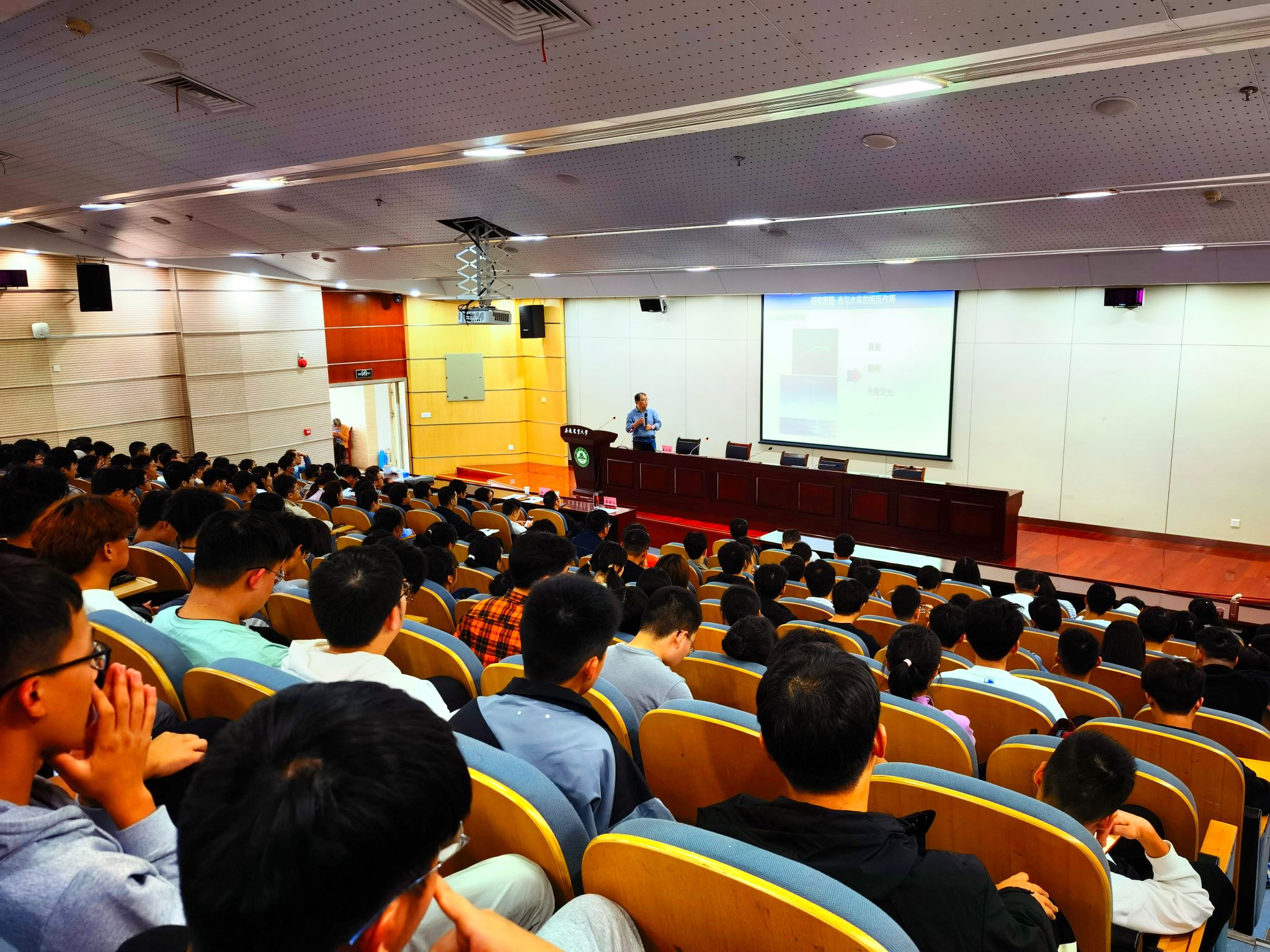 本网讯 时值我校95周年校庆,为进一步推进学科交叉与融合、促进科研人员间的交流与合作,信息与计算机学院于10月10日下午,在图书馆第二报告厅举办了2023年度第六期智慧耕“云”学术沙龙。本次活动邀请到国家农业智能装备工程技术研究中心副主任、国家知名专家、优秀青年基金获得者董大明研究员分别作了“水体污染物的现场、高灵敏光学传感技术-从传感器到智能仿生机器鱼”的学术报告、“浅谈如何争取国家自然科学基金资助”辅导报告。学院40余名教师和100名研究生参加了活动。