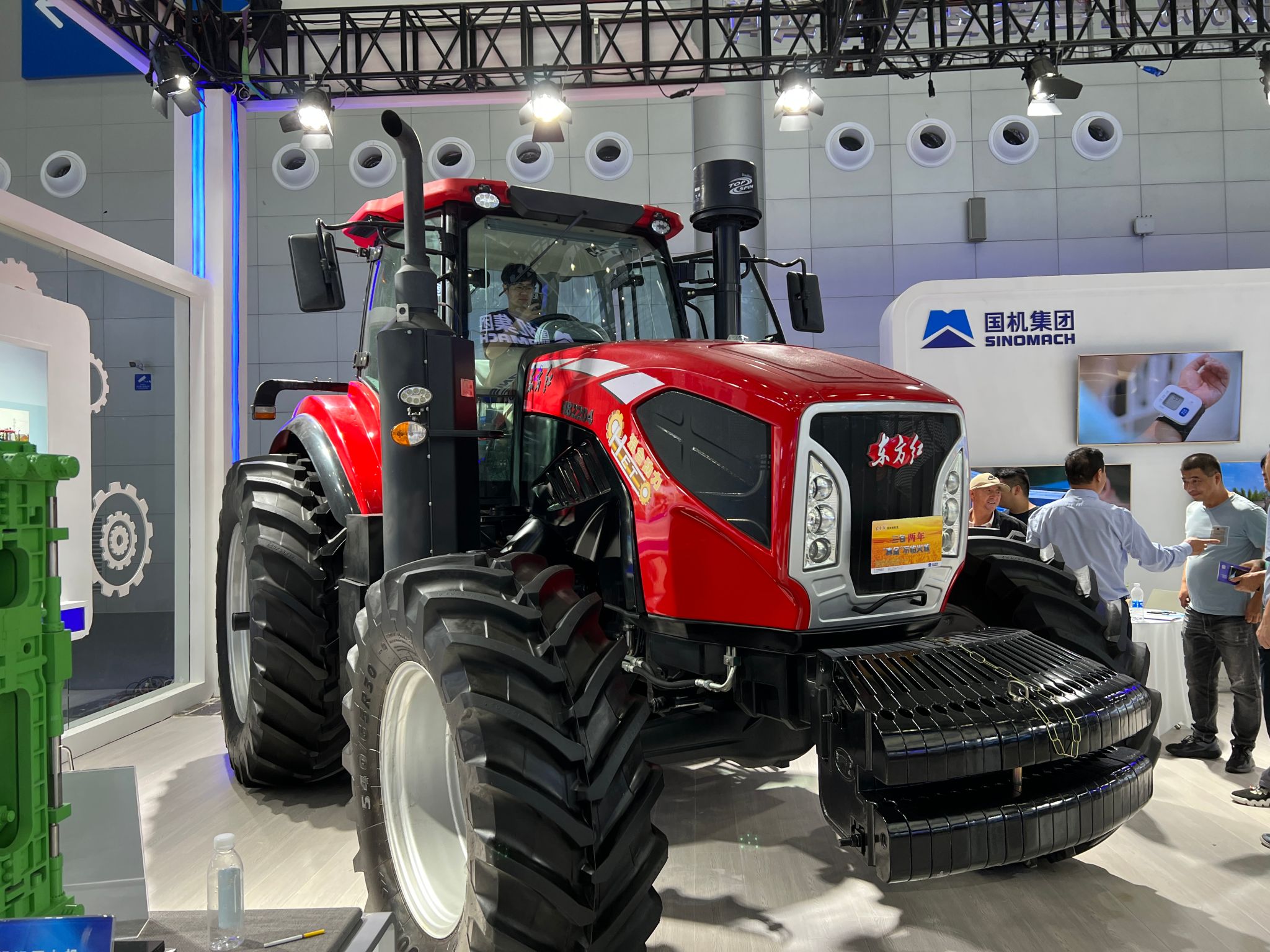 3号场馆外,天降小雨,在时速600公里高速磁浮交通系统前,同学们排起了长长的队伍,细致观察,小声交流:“这台车看起来酷似高铁,下面没有车轮,依靠磁力悬浮在轨道上。这么快速度,不知道推背感会不会很强?”车厢内,志愿者们热情的向同学们介绍:“磁悬浮列车运行起来安静且平稳,旅客们体验到的是没有感觉的感觉。”2号场馆内,一台前脸贴着东方红的拖拉机引起了同学们的注意,“这台拖拉机凭啥可以来参展?它有什么特别之处?”现场工作人员做了详细解释:“这是由中国一拖自主研发的220马力油电混合动力重型拖拉机,为国内首创,0-40km/h无级变速行驶。东方红拖拉机虽然是柴油发动机,但达到国四排放标准,甚至具备欧V排放升级能力,基本满足拖拉机排放清洁度,控制精确性和舒适性的要求。”同学们满脸兴奋,为国家高端制造的绿色转型、蓬勃发展而自豪。