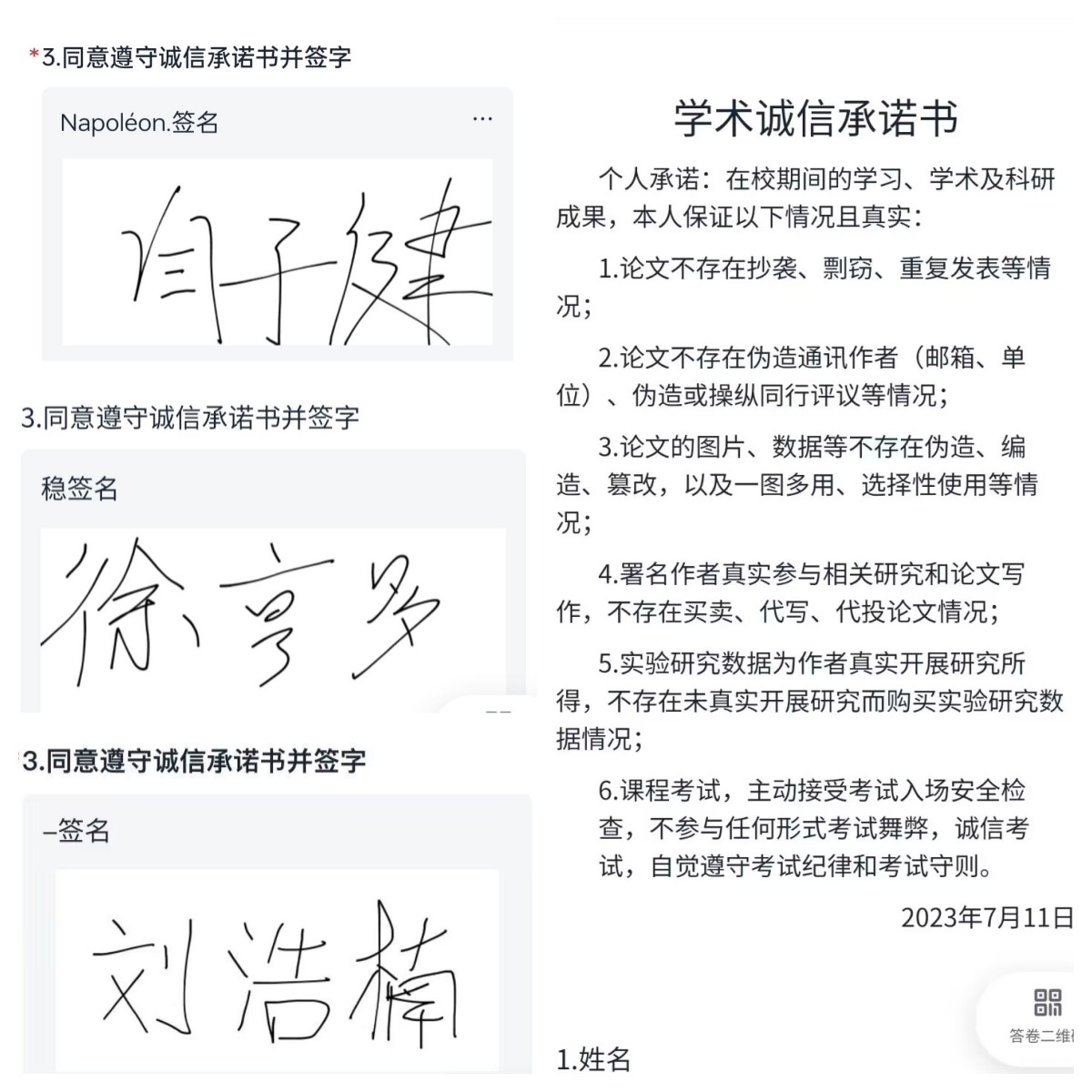 强引领,拧紧思想“总开关”。学院高度重视诚信考试教育,发布《信息与计算机学院关于做好2022-2023-2学期期末考试诚信应考等工作的通知》,要求各班级要凝心聚力,通过主题班会、学业帮扶、问题疏导等方式加强学业指导、积极做好诚信考试教育。各班级积极响应通知精神,组织学生集中学习《关于开展2023年诚信考试教育的通知》《<普通高等学校学生管理规定>安徽农业大学实施办法》《安徽农业大学本科生课程考核管理办法》《安徽农业大学学生违纪处分办法》《安徽农业大学学生学籍管理规定》等有关制度文件,同时制作《诚信考试 从我做起》推文,组织学生签署诚信考试承诺书,并结合案例做好警示教育,拧紧学生思想的“总开关”。