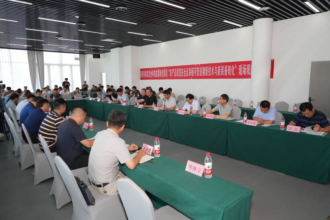 本网讯 7月2日,由我校牵头承担的安徽省财政农业科技成果转化项目“农产品质量安全区块链可信追溯新技术与新装备转化”现场观摩交流会在黄山市歙县召开。省财政厅、省农业农村厅、中科院合肥研究院、省农科院等20余位领导、专家出席会议。黄山市各级农产品质量安全监管负责人和部分茶叶、蔬菜技术骨干、经营主体等90余人参加了会议。