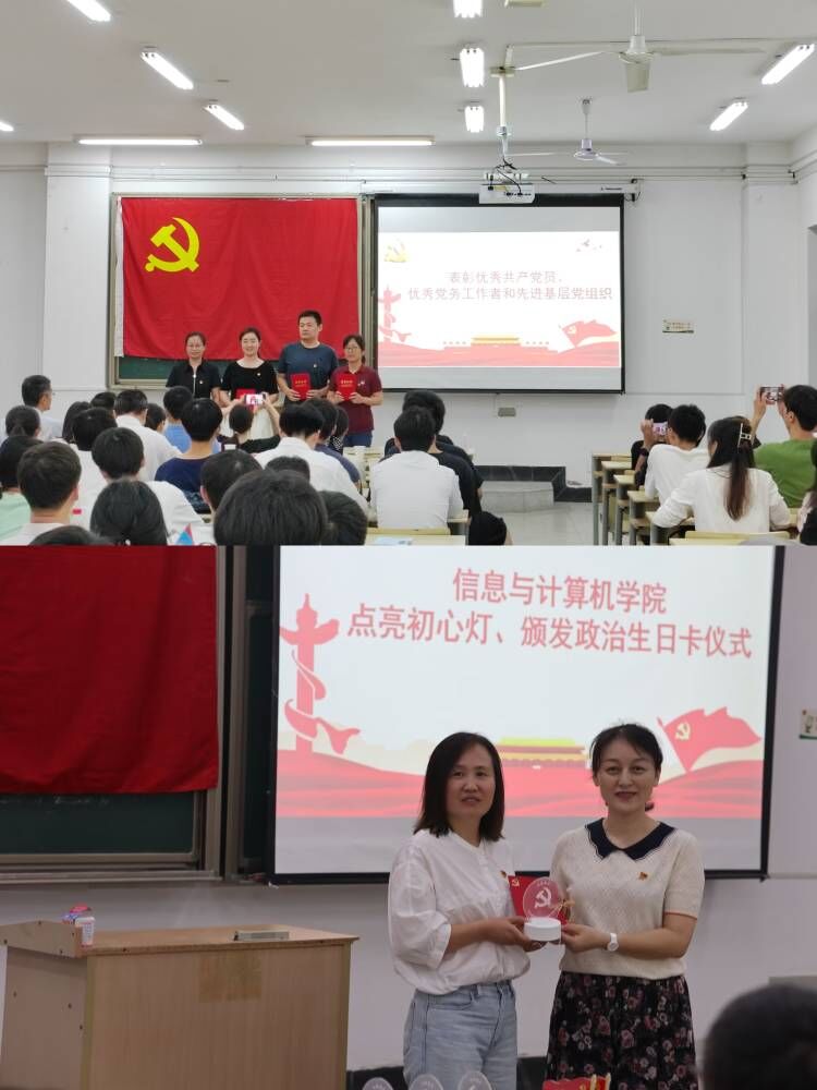 “政治生日”是每个共产党员人生中的重要时刻,也是回顾自己奋斗历程、再次点燃初心的关键时刻。计算机系教工第一党支部党员王永梅和13位学生党员分别迎来了入党25周年和1周年纪念日,支部书记为其颁发政治生日卡,这不仅体现了党组织的亲切关怀,更是一次深刻的党性教育,激发广大党员的政治热情,增强使命担当。同时,为弘扬伟大建党精神,充分发挥先进典型的示范引领作用,学院特此表彰优秀共产党员、优秀党务工作者、先进基层党组织,引导广大党员见贤思齐,争当先锋。
