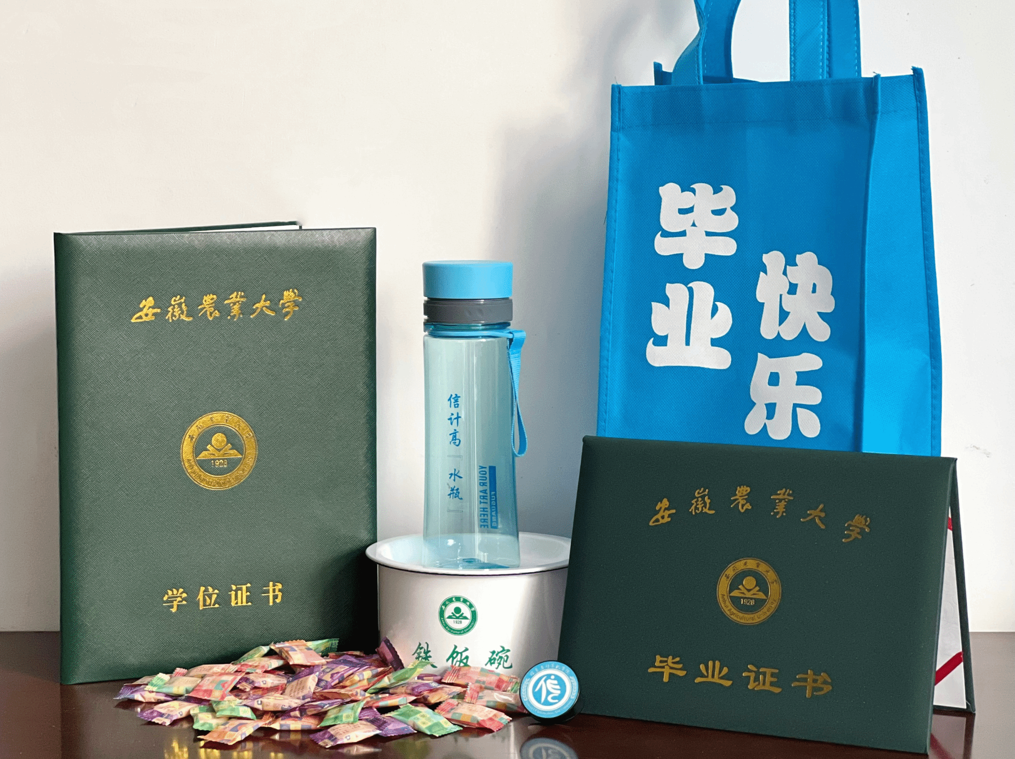 桃花潭水深千尺,不及母校育我情。学院精心为毕业生筹备礼物,以礼相赠,寓意满满,以表千尺情深。一个“安农铁饭碗”稳就业促发展,一个“信计高水瓶”展水平创新绩,一个“信计手机支架”撑起一个校友之家;一份“信计牌奶片”送给时代好青年;一个“原创印花布袋”寓意“一粒一粒的种,必有满仓满屋的收。”以一份礼,载一份真诚的祝愿;以一份礼,系两端真挚的师生情谊;少年各有山海,盛大未来,带着希冀和祝愿,载着心愿和寓意,携起信计大礼包,定会奔赴属于自己的未来。