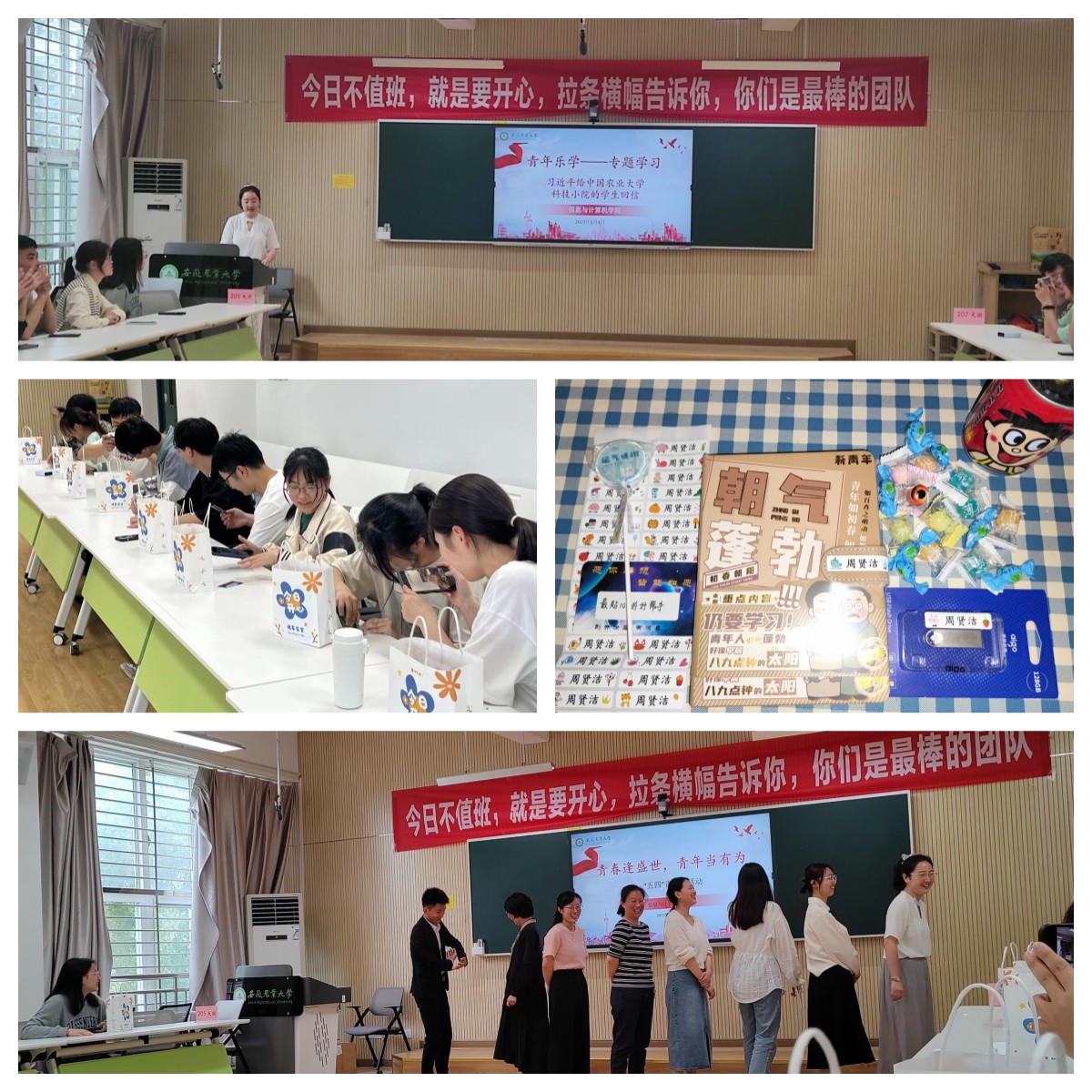 活动伊始,办公室学生助理围绕日常工作,分享体验和心得,纷纷表示在办公室奋进的大家庭中收获了友谊和成长,展现“青春担责”。“青年乐学”环节,学院办公室老师领学了《习近平给中国农业大学科技小院的同学们的回信》和安徽农业大学《青春与“粒”同行》主题微视频,引导同学们进一步厚植三农情怀。“青春相伴”环节,师生共同完成了“你画我猜”“我有你没有”和“逛三园”三个游戏环节,充分展现了师生的默契与青年的担当,活动气氛温馨愉悦。“青年仪式”中,助理们收到了学院精心准备的纪念品,同时收获了院办老师为其亲笔书写的赞美。随后,李南飞作“青春寄语”,她强调,学生助理团队来自于学生服务于学生,是学院领导老师的好帮手,是展现学院服务形象的微窗口,要坚定理想信念,自觉主动用习近平新时代中国特色社会主义思想武装头脑、指导实践、推动工作;发扬奋斗精神,主动攻坚克难、共同为学院学生工作出谋划策;传承奉献品质,团结协作,担当尽责,克服功利思想,不计较个人名利和得失;不忘自律自爱,带头遵规守纪,克服工作中的麻痹思想。