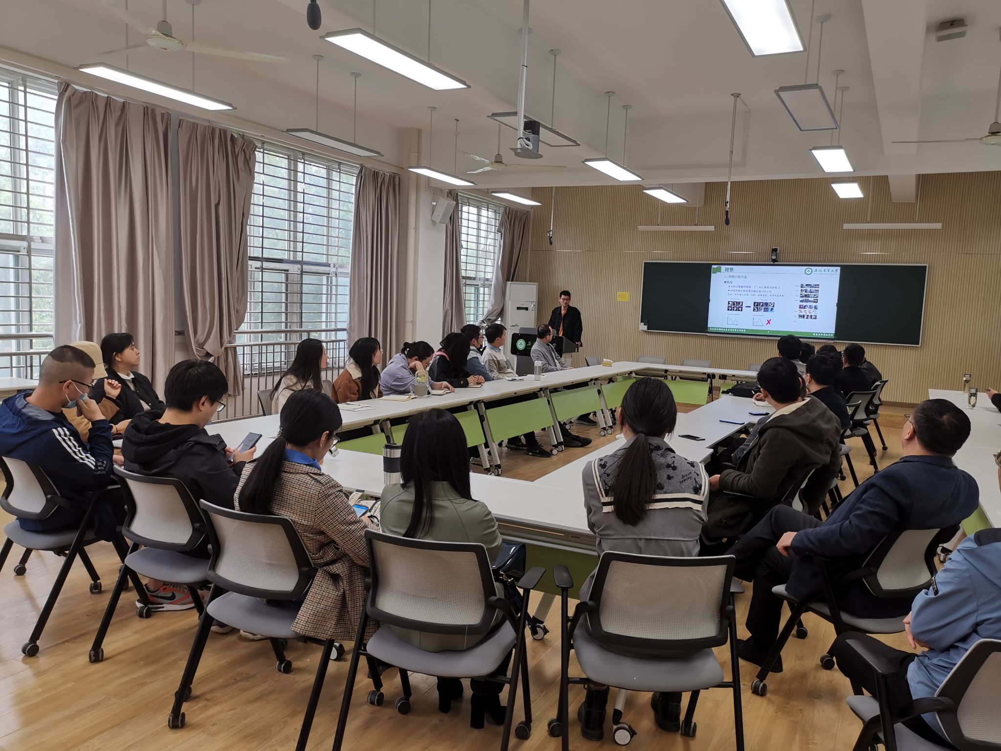 杨帅在报告中围绕传统分类-领域适应-单源领域泛化三个主题,层层递进展开叙述,详细介绍了领域适应方法以及如何用因果推断技术辅助提升单源领域模型的泛化能力,并与在座的老师就如何获取文本图像因果表征、如何采用数据增强技术提高训练数据的多样性等问题展开了热烈讨论。学术沙龙活动内容丰富、浅显易懂、见解独到,让与会的教师深受启发。(一审:孙光旭,二审:饶元)