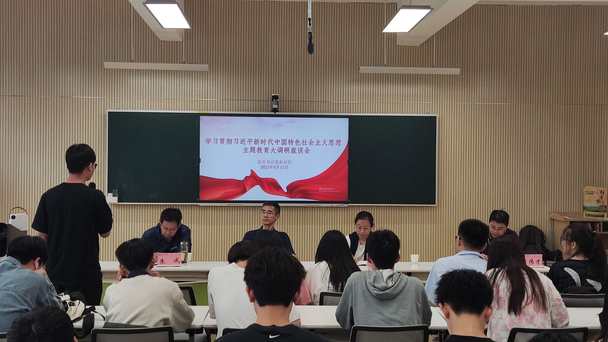 本网讯 为深化“改作风、办实事、促发展”专项行动,持续推动学习贯彻习近平新时代中国特色社会主义思想主题教育落地落实, 5月17日中午,信息与计算机学院组织召开学风建设、实验室建设情况调研暨期中教学检查学生信息员座谈会。副院长张武、实验教学中心主任朱诚、教学秘书严伟才、2020-2022级各班学生信息员参加了会议。座谈会由院党委副书记、纪委书记李南飞主持。