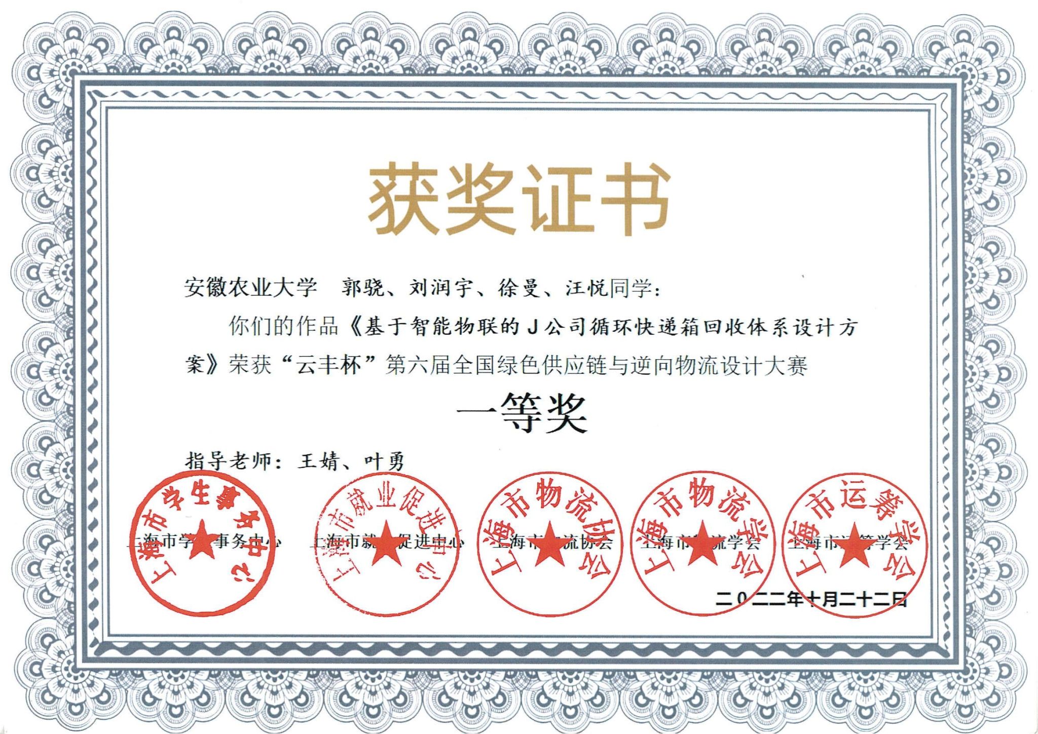 本网讯 近日,“云丰杯”第六届全国绿色供应链与逆向物流设计大赛在上海第二工业大学顺利落下帷幕。我校信息与计算机学院物流工程系王婧、叶勇指导的“碱基配队”斩获大赛一等奖。