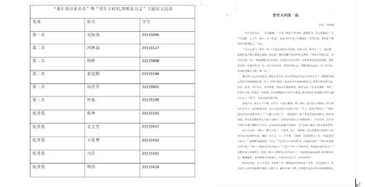 “以青春之我,赴万丈理想”,为了进一步彰显新时代青年风采,增强自我悦纳能力,学院于11月份开展“那年那月那青春”主题征文活动。经过前期广泛宣传动员,学院共收集征文作品150余篇。同学们以文抒发情感,以文作时代标注,以文展青年风采,弘扬时代精神,书写人生华章。