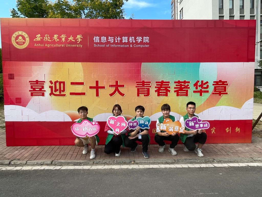 学院专门设计制作了“信”心百倍、“新”想事成等以新生成长体验为内容的“新”系列迎新板,祝愿新生能够圆梦安农。“大信计,小欢喜,Big data全是你”等特别融入专业特色的“信计”系列专属板,充分激发新生专业兴趣。来自全国各地的430位新生手拿拼图,在印有“学识笃‘信’笃行 人生‘计’往开来”主题拼图展板的基础上,共同拼成了“喜迎二十大 青春著华章”的主题板,以青春之名,写时代华章。