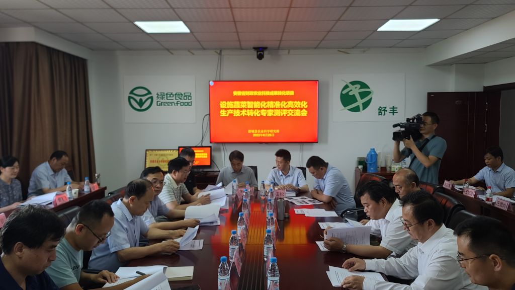 本网讯 为贯彻落实省委省政府促进科技成果转化重点工作部署,更好地服务省委“两强一增”行动方案。6月25日,由我校主持的安徽省农业科技成果转化项目“设施蔬菜智能化精准化高效化生产技术转化”中期专家测评交流会在舒城县农业科学研究所桃溪红光试验基地成功举行。省农业信贷融资担保有限公司总经理陈维光、省农业农村厅市场信息化处副处长丁晓东、中国科技大学信息学院教授俞能海、省种子管理站研究员汪社宽、省农业科技中心研究员章玉松、省农业科学院植物保护与农产品质量安全研究所研究员戚仁德、安徽农业大学汪承刚等专家,项目承担与管理单位领导、舒城县有关领导、项目组主要成员以及举办单位相关人员40余人参会。校党委常委、副校长操海群出席会议。会议由省农业科学院科研管理处处长李成主持。