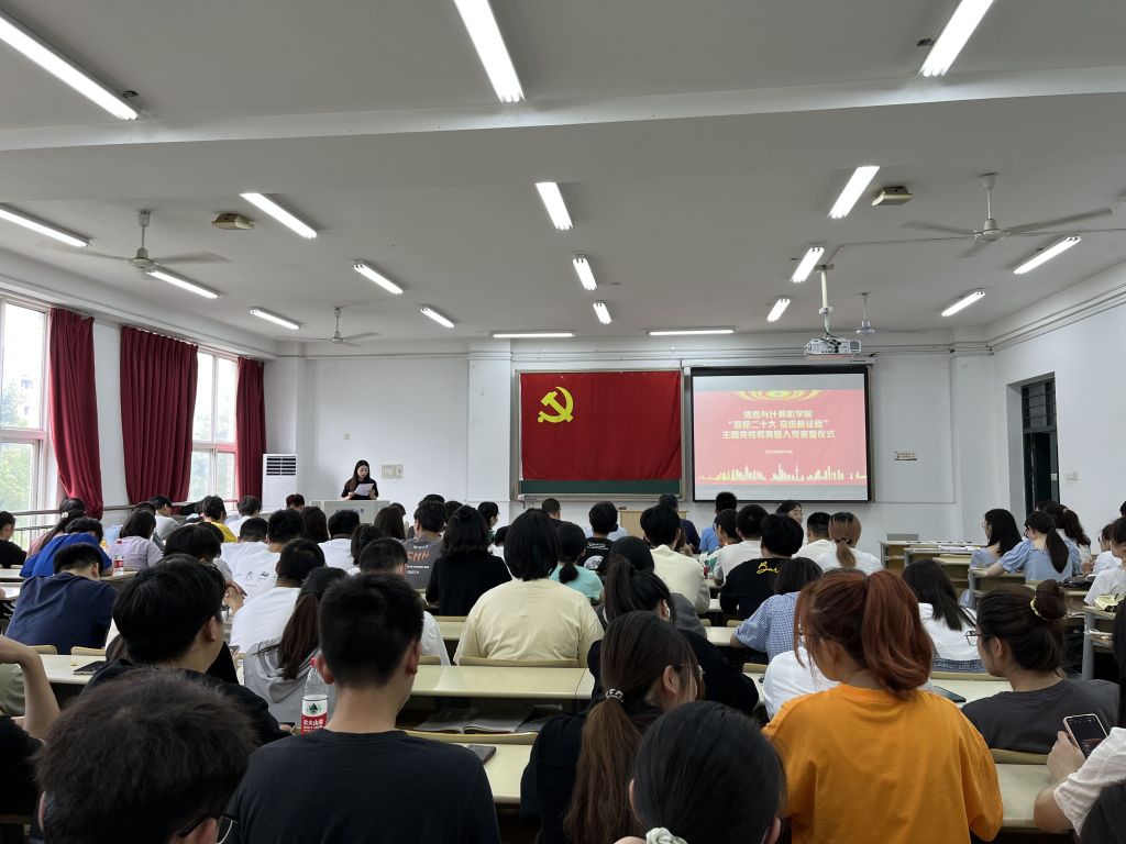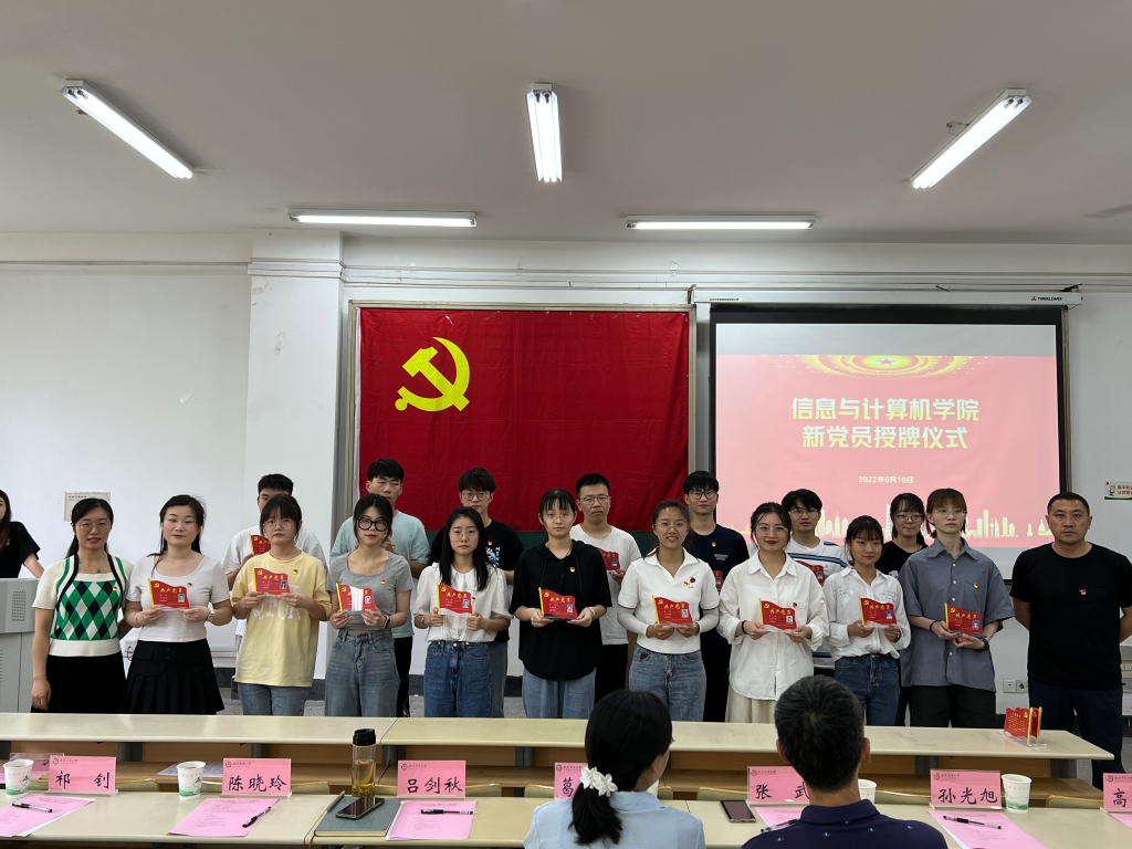 本网讯 6月10日中午,信息与计算机学院开展了“喜迎二十大 奋进新征程”主题党性教育暨入党宣誓仪式,学院党委书记葛红、党委副书记吕剑秋、副院长张武、学生党支部书记及学生党支部党员参加了活动。