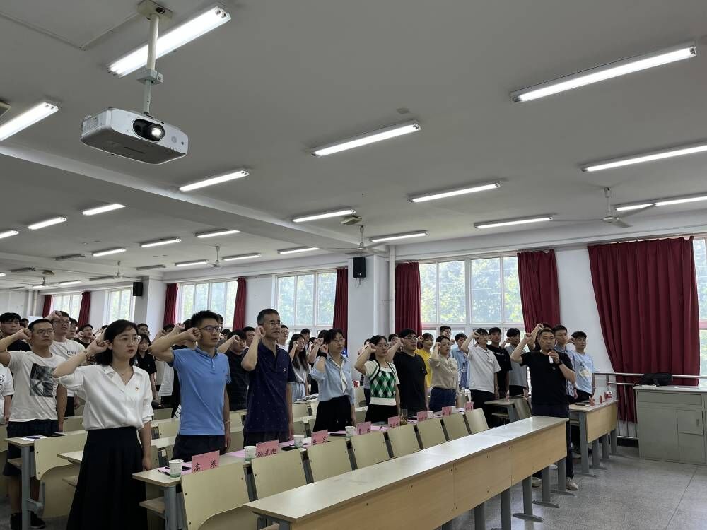 牢记入党誓言,实干践行使命。面向鲜红的党旗,全体党员举起右拳,用整齐洪亮的誓言庄严宣誓。仪式上,新发展党员代表李梦竹郑重许下承诺:坚定理想信念,强化责任担当;学习专业知识,提升综合组织;立足社会实践,践行初心使命。毕业班党员丁沁怡结合个人入党以来的成长收获,倡议同学们要在思想上“学”起来,学业上“卷”起来,工作上“动”起来,恪守在党旗下的誓言,与党同心同德、与时代发展同向同行。