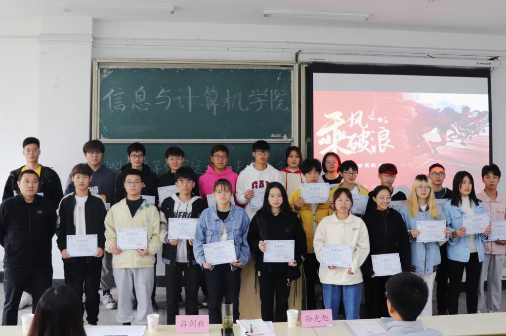 本网讯 为表彰在2021年校运动会中表现优异的运动员、志愿者以及“先进班级”,进一步激励学生积极参与体育锻炼,加强学院三风建设。11月17日,信息与计算机学院在经计楼202教室举行校第56届运动会、先进班级表彰大会。学院党委副书记、纪委书记、副院长吕剑秋,相关师生代表参加了大会。