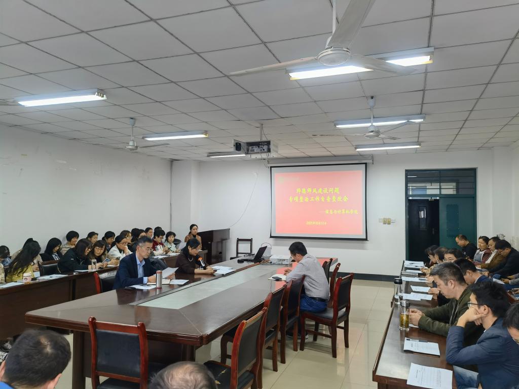 本网讯 根据师德师风建设相关要求,10月14日下午,信息与计算机学院在经技楼406召开师德师风建设问题自查整改会。学院党政领导,全体教职工参加会议。本次会议由院党委书记葛红主持。