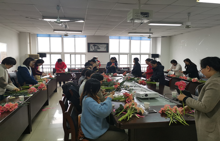 本网讯 3月10日下午,为庆祝“三八”国际妇女节的到来,丰富女教师的业余文化生活,陶冶女职工的艺术情操,学院工会组织开展“素手拈花绽芳华,细嗅花香品人生”艺术插花体验活动,特邀园艺学院王华副教授讲解插花艺术与技巧并作现场指导。