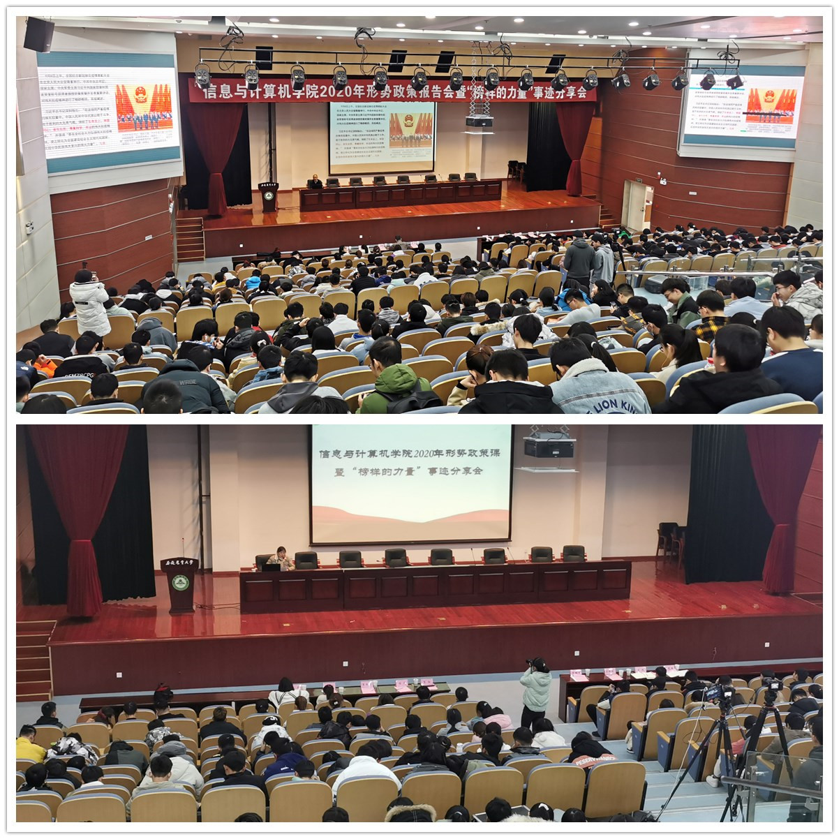 本网讯 12月16日,信息与计算机学院在图书馆一号报告厅举行2020年形势政策报告会暨“榜样的力量”事迹分享会。学院党政领导班子出席了会议,学院办公室、部分学生代表参加了会议。