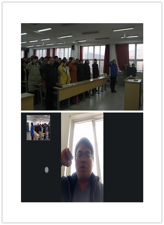 宣誓仪式在国际歌中开启,主持人宣读了2019年下半年新党员名单,学院党委委员和学生党支部书记分别为新党员颁发了党员铭牌,新党员在正式党员代表领誓下开展了集体宣誓,因病不能现场宣誓的新党员采用网络视频直播的方式进行了宣誓,其他党员重温了入党誓词,随后新党员代表向党组织进行了表态发言。学院党委书记曹俊同志向新党员的加入表示祝贺,他强调,入党就意味着要奉献更多、服务更多,希望党员加强理论武装,提高政治素养;牢记政治身份,发挥表率作用;增强报国本领,砥砺强国实践;不忘入党初心,牢记为民使命。