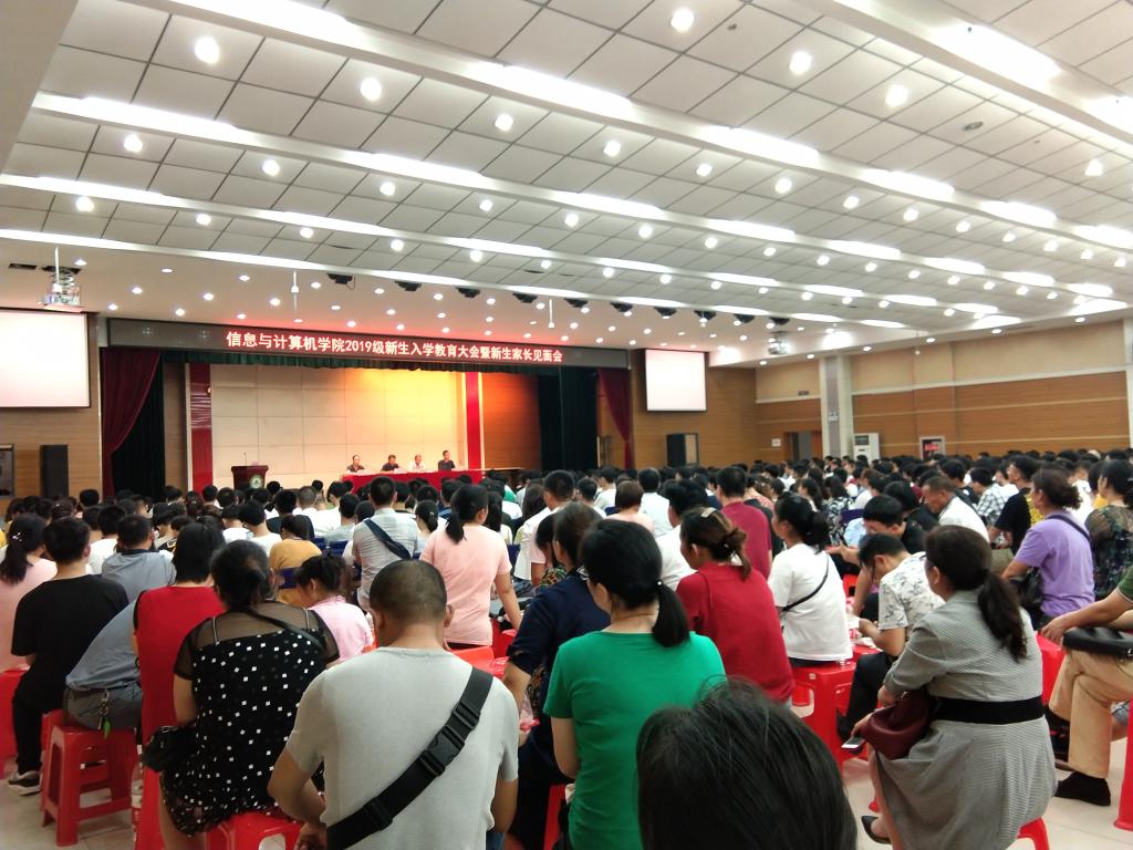 本网讯:9月7日16:30,信息与计算机学院在欣苑四楼大学生活动中心隆重举办2019级新生入学教育大会暨新生家长见面会,学院党委书记曹俊,党委副书记、院长张友华,副院长张武,学院2019级新生辅导员、办公室相关老师、全体2019级新生及部分新生家长参加了大会,会议由副院长辜丽川主持。