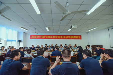 (本网讯)6月29日,信息与计算机学院迎来了1999届计算机科学与技术专业学子毕业20年回母校团聚。学院在406会议室举办座谈会,邀请到时任班主任、校宣传部常务副部长朱绍友,时任领导和教师尤德胜、徐亚华、孙力、杭小树、唐红萍等出席,学院党政领导、部分教师代表参加了座谈交流。